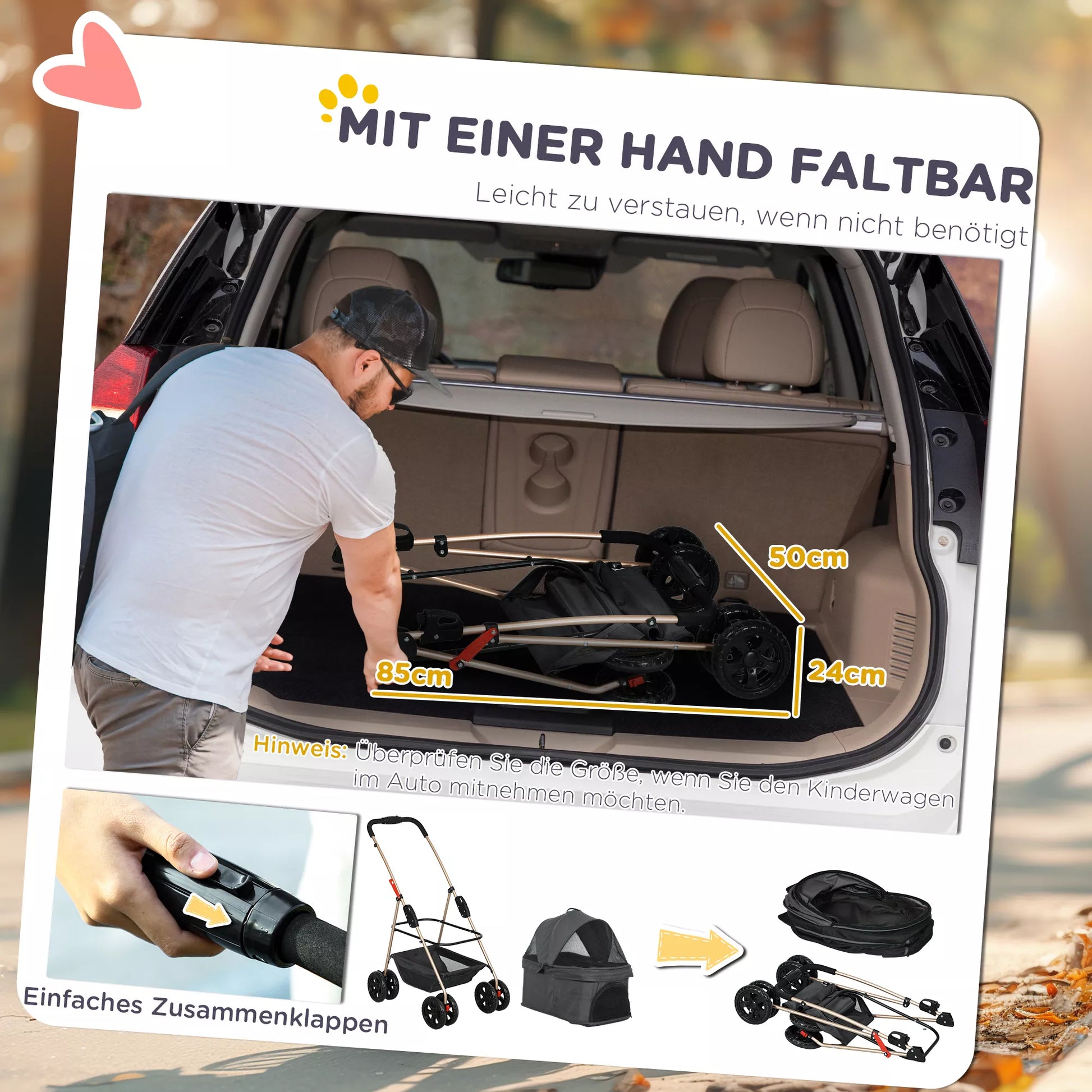 Atklājiet suņu ratiņus ar praktisku 3-vienā dizainu! Šie suņu ratiņi viegli pārtop no ērtiem mājdzīvnieku ratiņiem par autokrēsliņu vai pārnēsājamu mājdzīvnieku pārnēsāšanas somu. Ideāli piemēroti mājdzīvniekiem līdz 4 kg, to noņemamais apvalks atvieglo ceļošanu. Vienkāršais vienas rokas salocīšanas mehānisms nodrošina bezrūpīgu ceļošanu. Drošības tīkls un mazgājams, ērts spilvens nodrošina bezrūpīgus, elastīgus un mājīgus piedzīvojumus ar jūsu četrkājaino draugu.