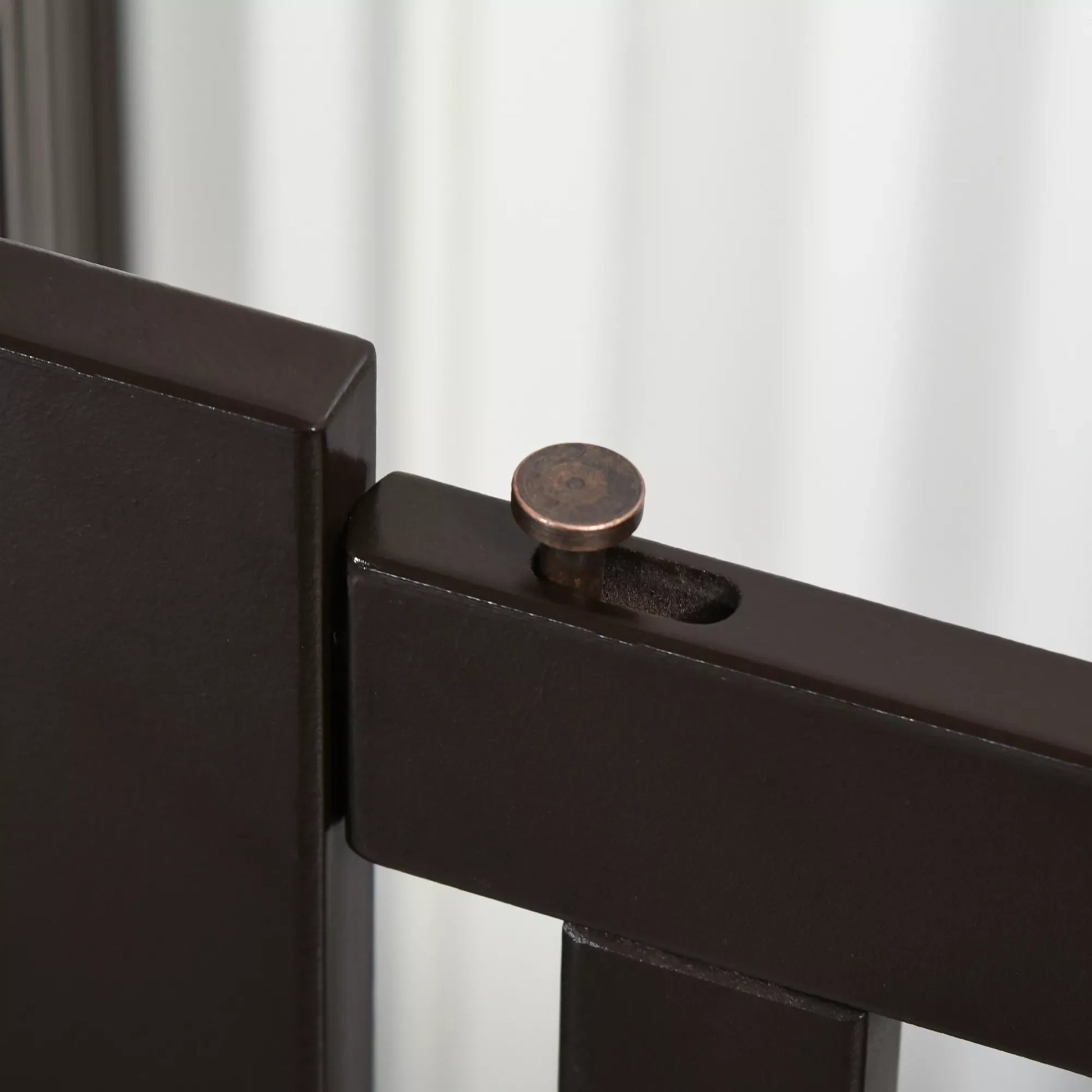 Suņu drošības žogs, brīvi stāvošs, regulējams, ar balstiem, 155 x 76 cm, koka, salokāms, kāpnēm, durvīm, virtuvei, gaitenim, 3 paneļi, tumši brūns