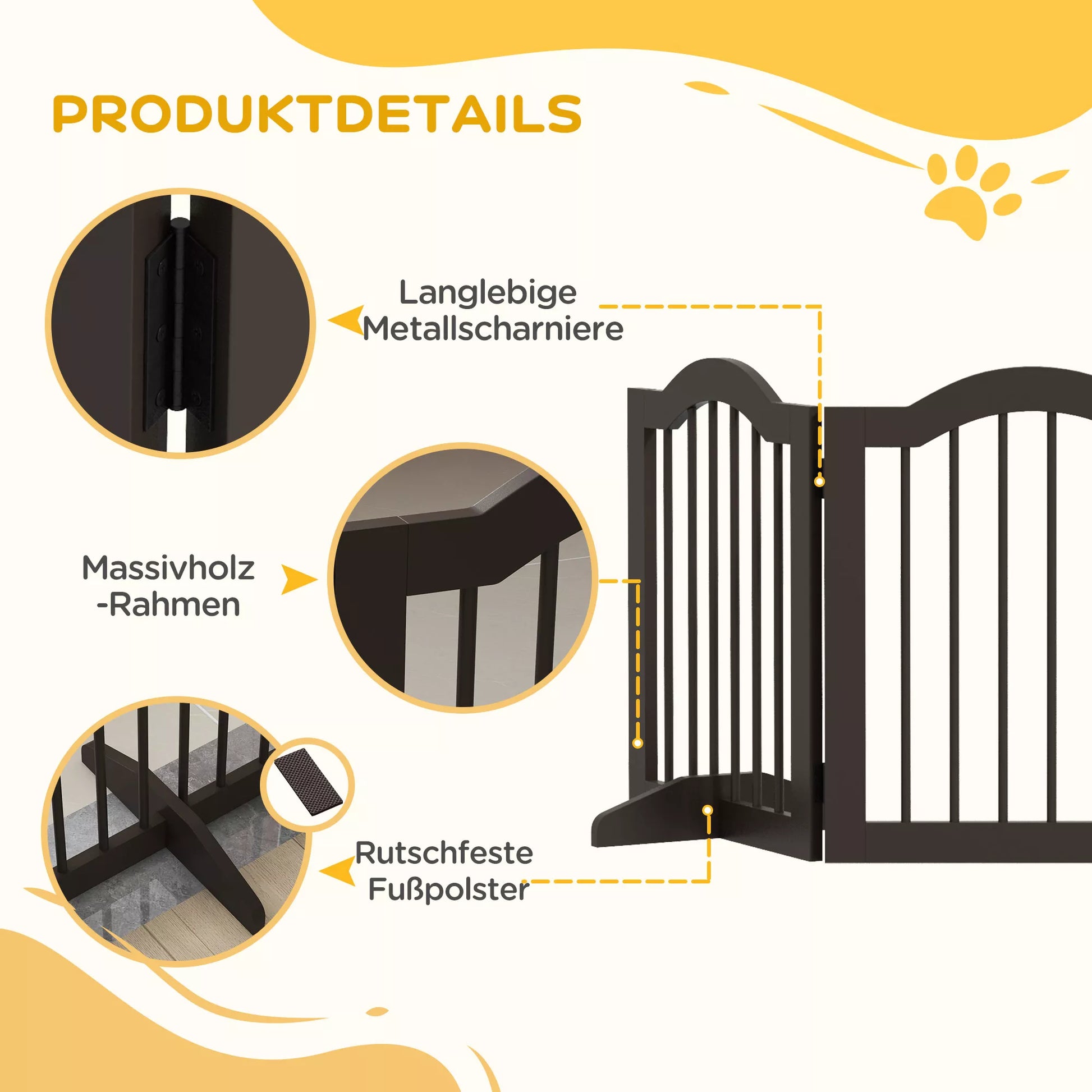 Suņu drošības barjera, 3 paneļi, salokāma, masīvkoka un MDF, 154,5 x 29,5 x 61 cm, kafijas krāsā