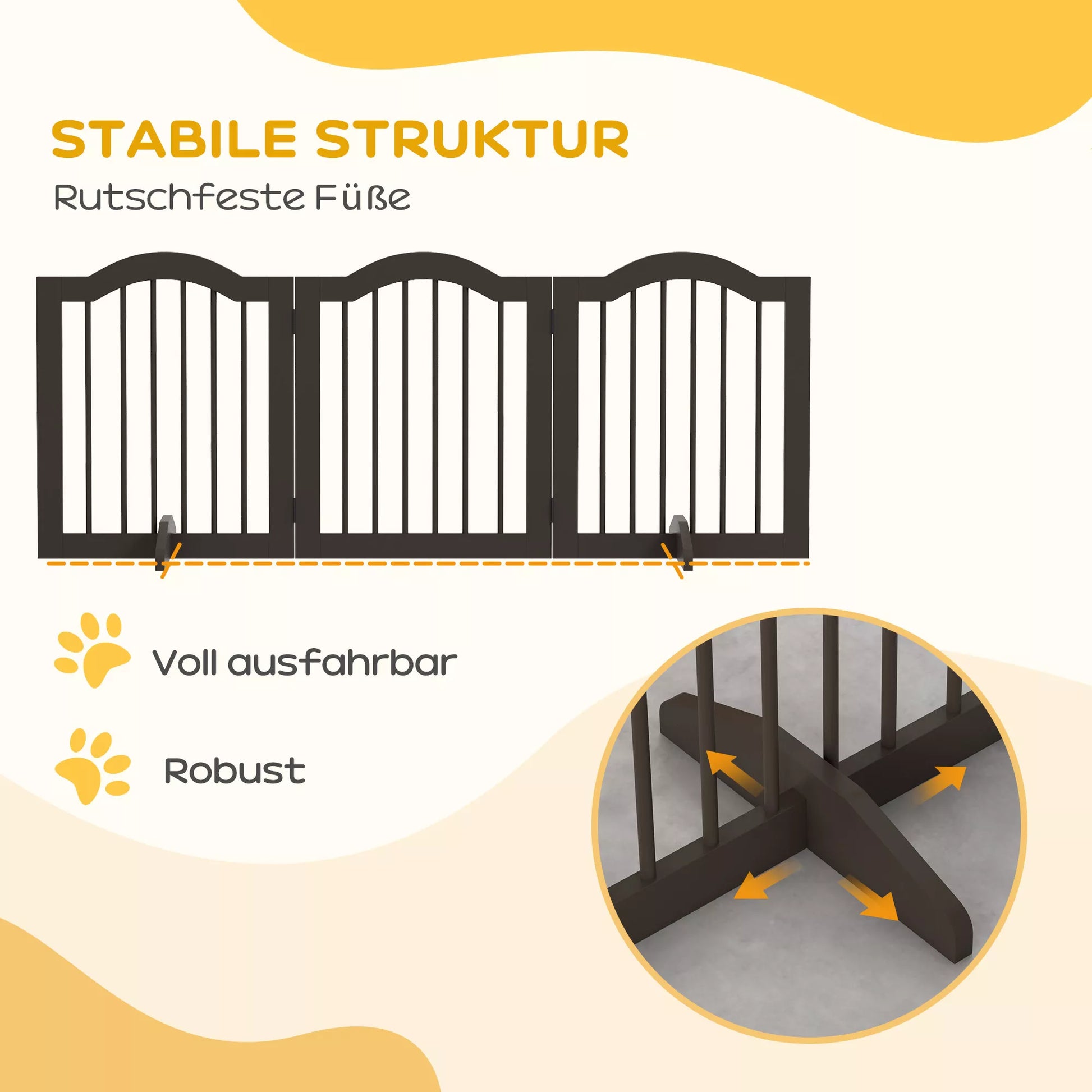 - ✔ Piezīme: Tā kā šim suņu žogam ir atbalsta kājas, to var pilnībā izstiept