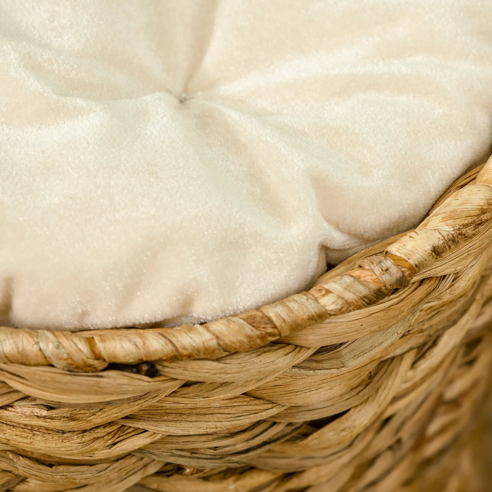 - ✔ Kaķu skrāpējamā staba izturīgais metāla rāmis un ūdens hiacintes pinums garantē izturību