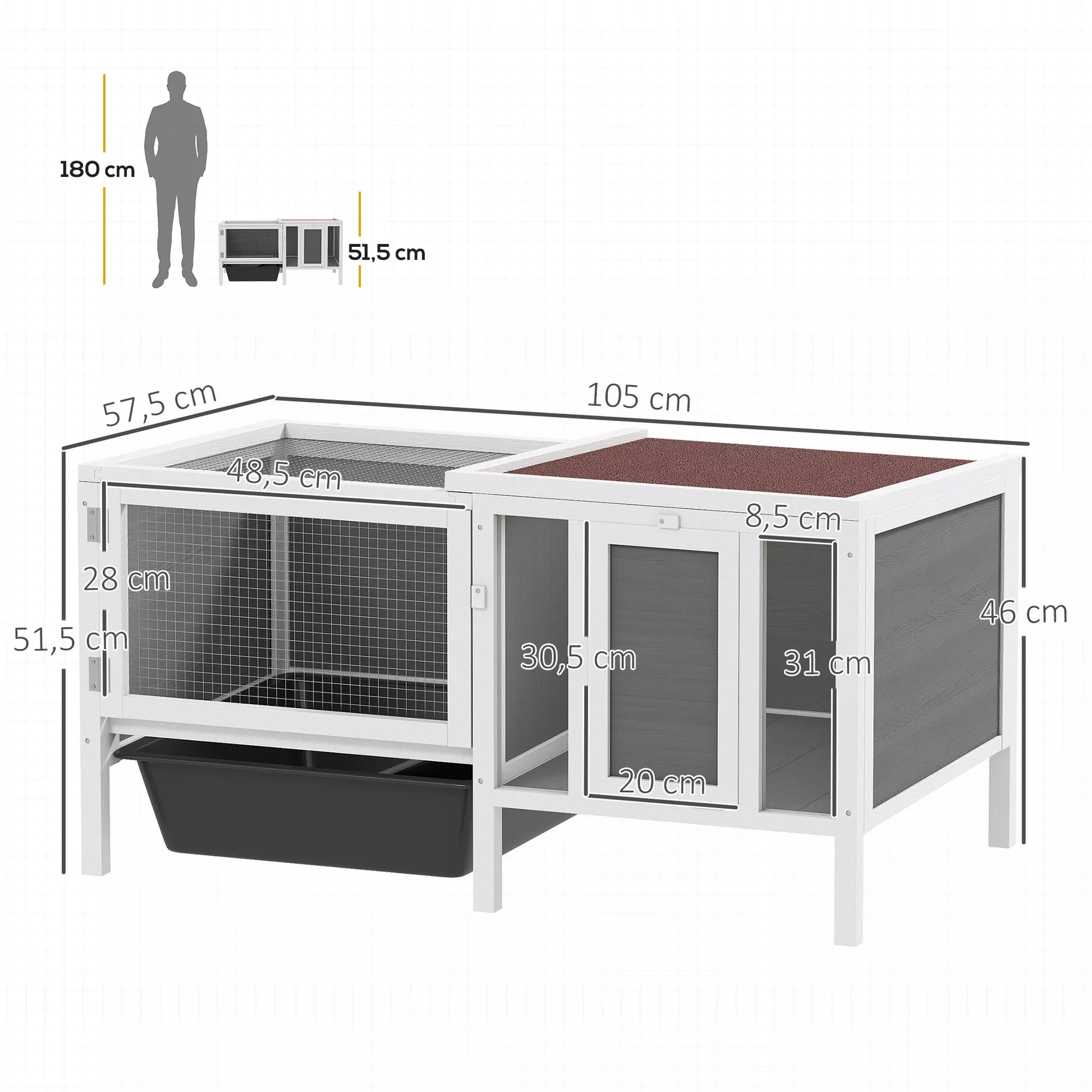 Ar esate pavargę nuolat kovoti dėl savo augintinio kambario švaros ir saugumo? Ankštas, netvarkingas narvas sukelia gyvūno nepasitenkinimą ir stresą jums. Triušių narvas yra puikus sprendimas: su savo atspariai oro sąlygoms eglės medžio konstrukcija, erdviu dviejų zonų dizainu ir lengvai valomu ištraukiamu padėklu jis suteikia saugų ir laimingą namą, kuris palengvina kasdieninę priežiūrą.