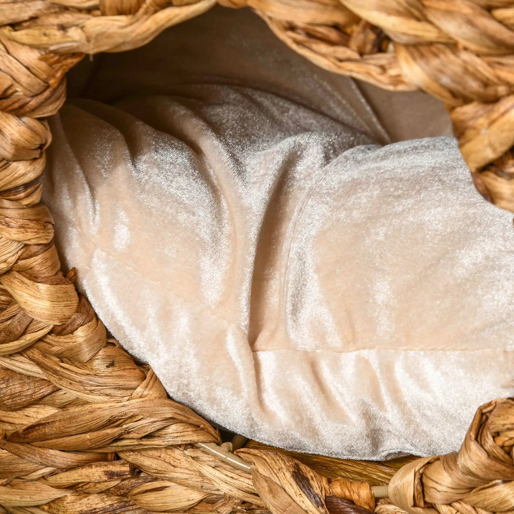 Šī kaķu mājiņa ar atstarojošu ūdens hiacintes dizainu ir ne tikai ērta atpūtas vieta, bet arī lieliska virsma, kur jūsu kaķis var kasīties. Uzdāviniet savam kaķim šo grezno slēptuvi un palīdziet tam kopt nagus!