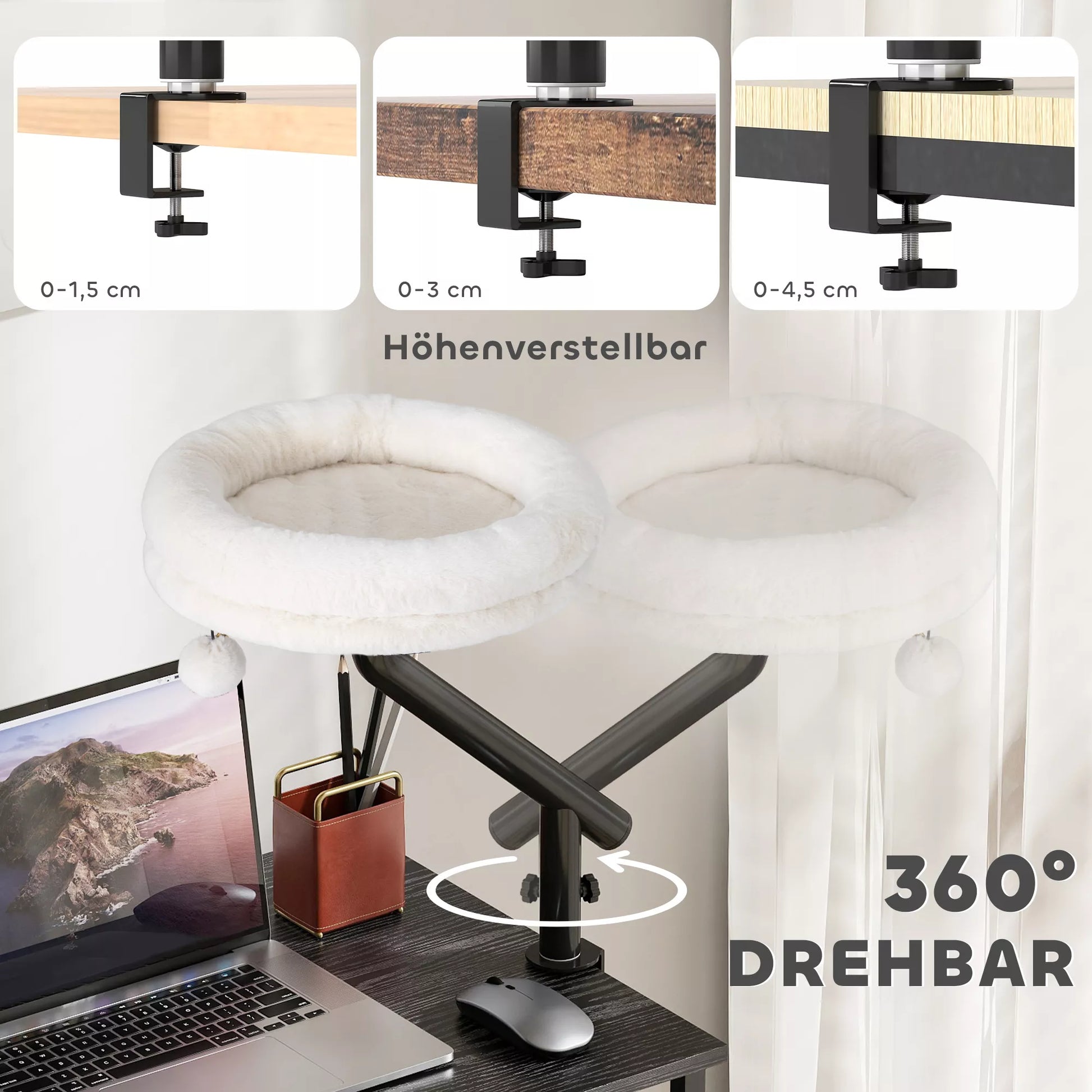 Kaķu gulta pie rakstāmgalda, kaķu gulta pie rakstāmgalda ar 360° rotāciju, regulējams augstums, kaķu gulta ar noņemamu, veļas mašīnā mazgājamu spilvenu, kaķiem līdz 6 kg, mājas birojam, krēmbalta