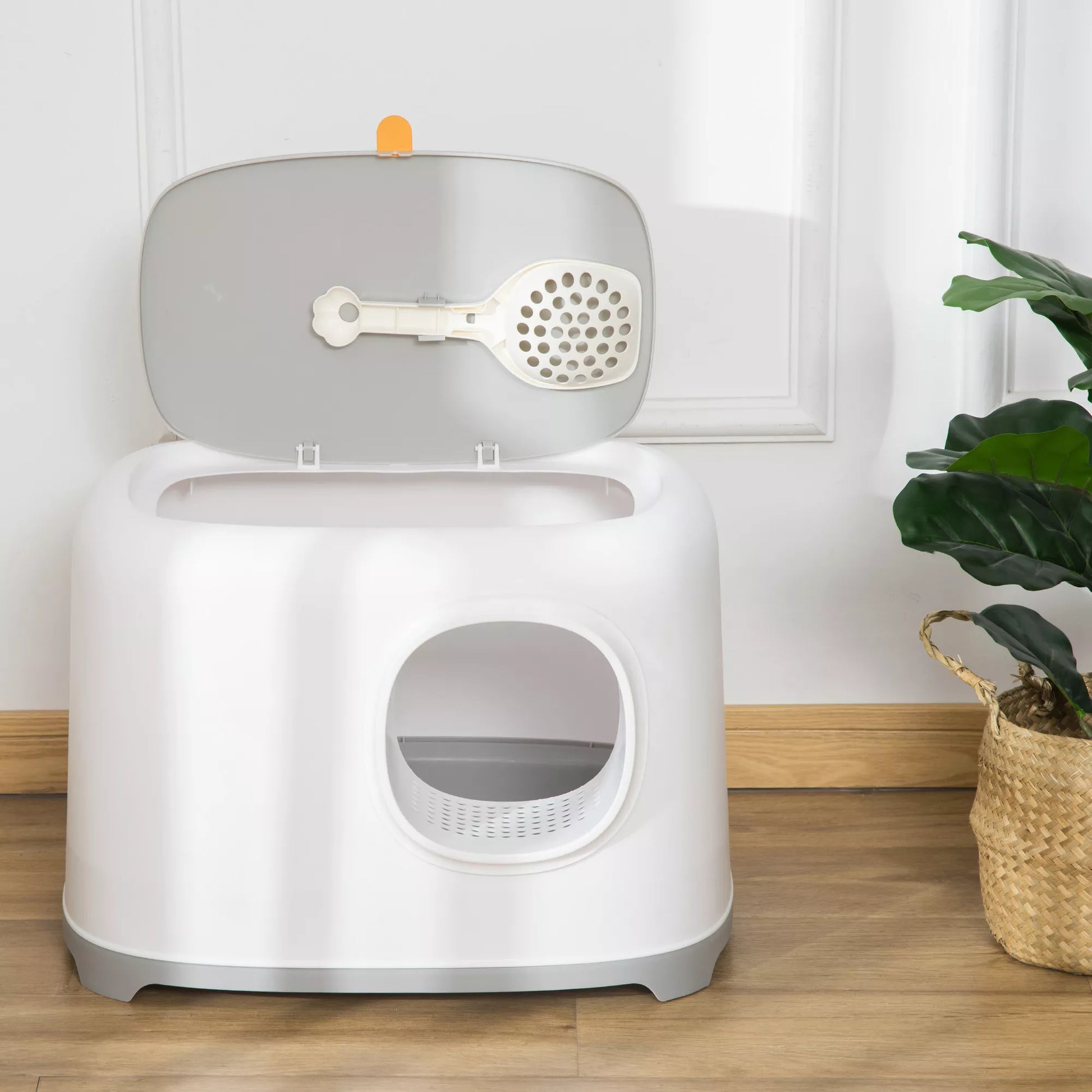 Katės tualetas su dangčiu Katės tualetas su gaubtu Kastuvėlis Grotelės XXL Katės tualetas katėms iki 5 kg 55 x 40 x 39 cm Balta