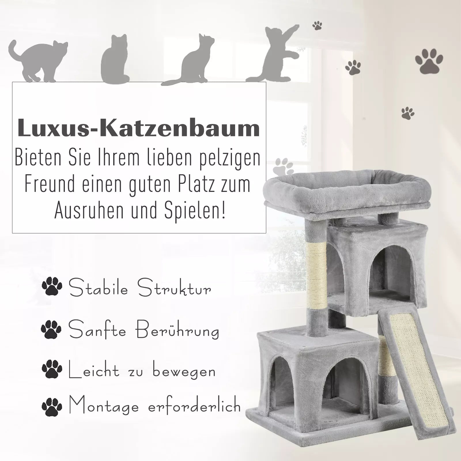 Katės nagų galandimo medis gali užimti jūsų gyvūnus valandų valandas. Jis suteikia vietą žaisti, ilsėtis ir galimybe galąsti nagus. Katės braižymo medis turi dvi urvas ir keletą gulėjimo vietų, visos jos yra padengtos minkštu pliušu. Nagams galąsti yra sisalo kolona ir braižymo lenta. Ant šio tvirto katės baldo jūsų augintiniai gali išsilaisvinti iš visos širdies.