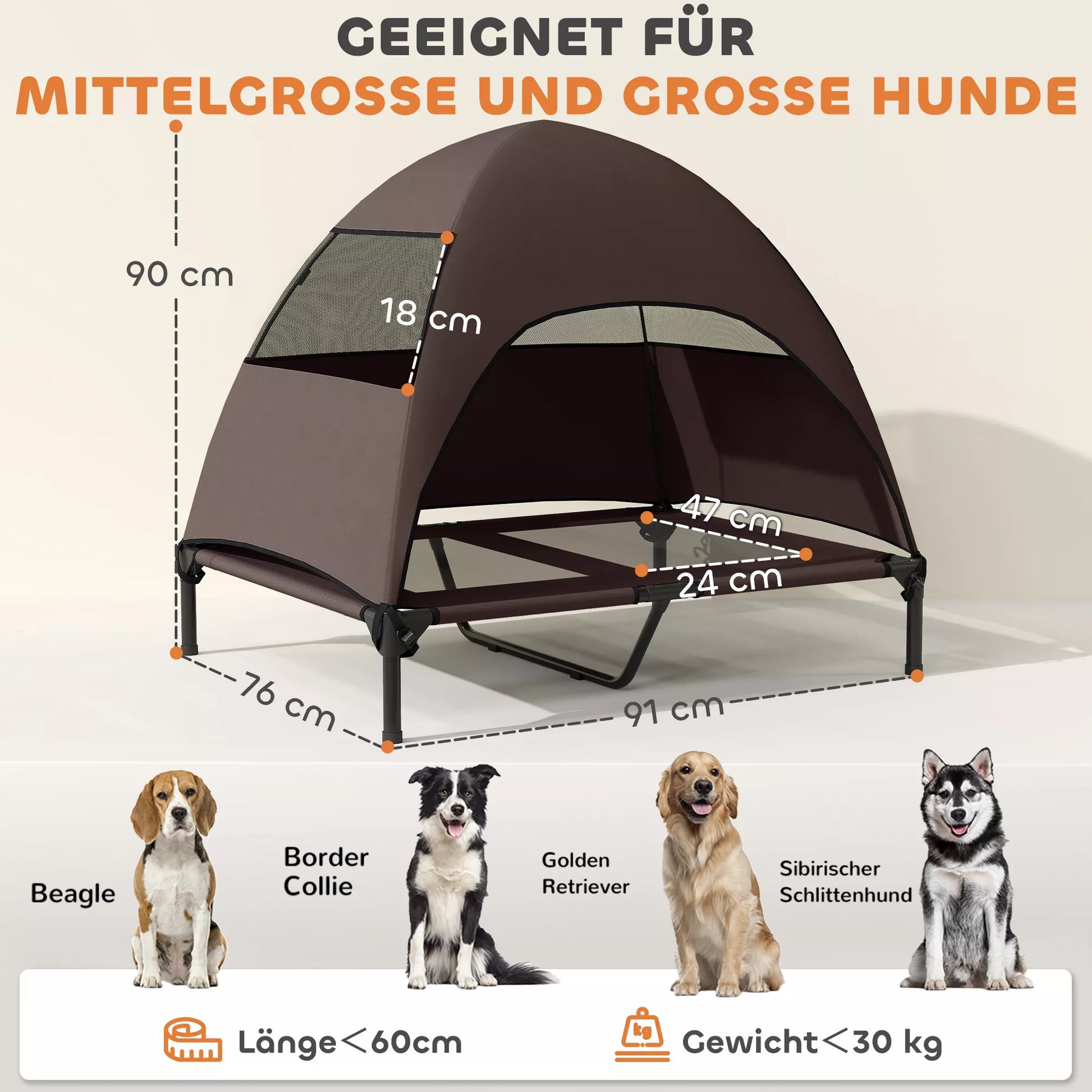 • ✔ Suņu gultas ar jumtiņu tekstila siets veicina gaisa cirkulāciju un uztur suņus vēsus