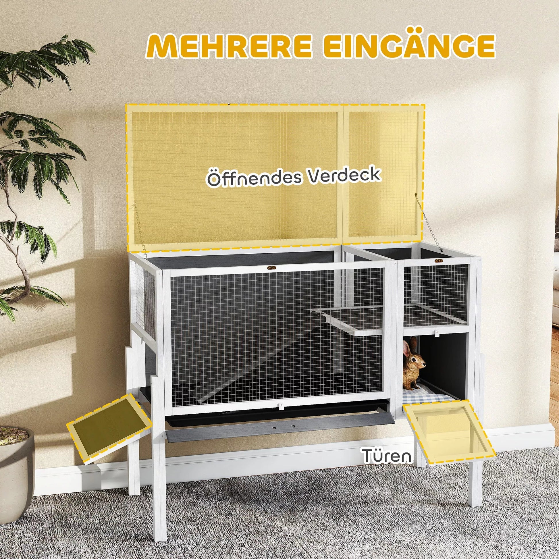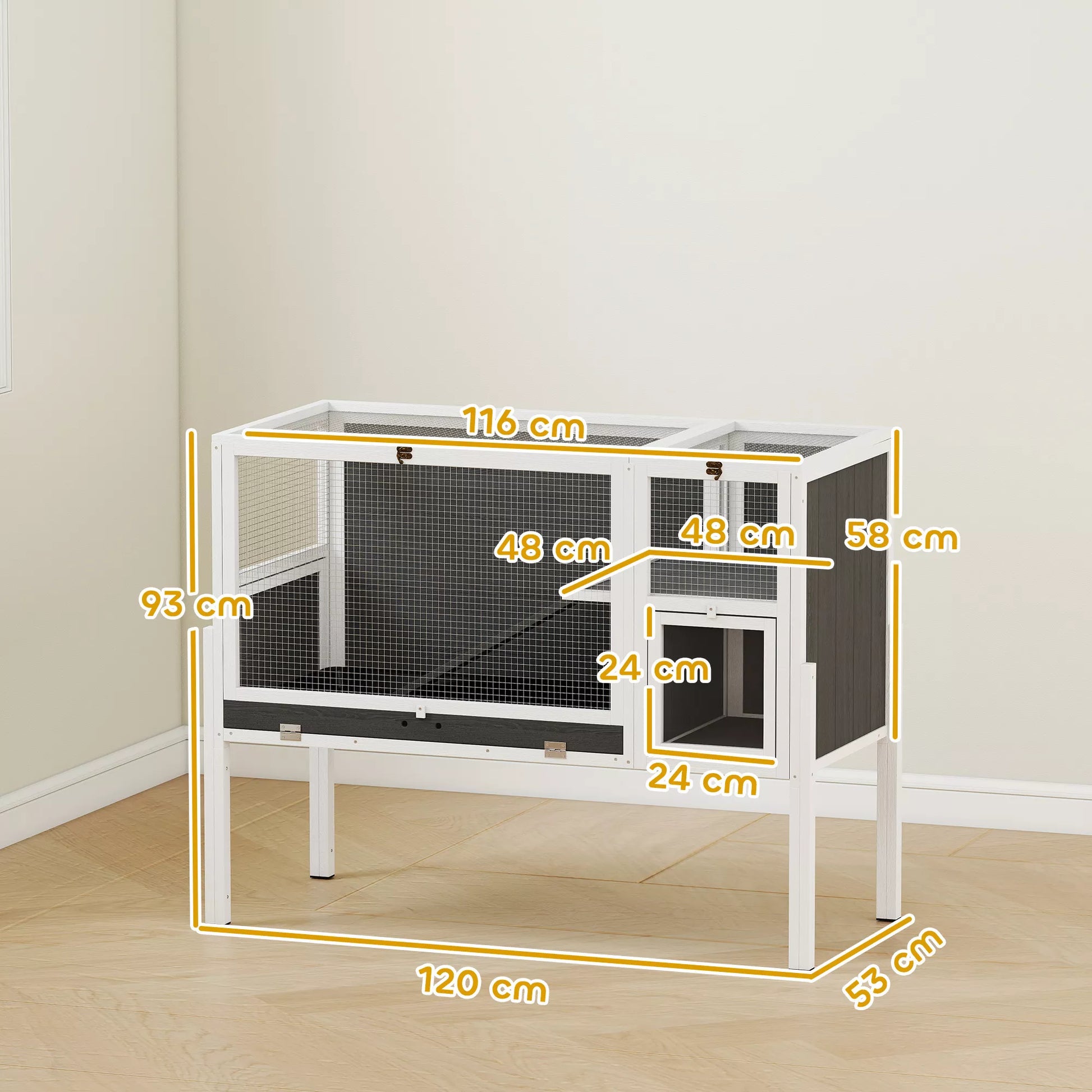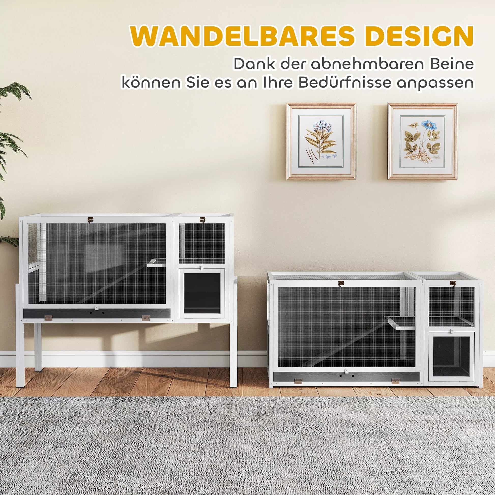 - ✔ Modernus, baldams panašus mažųjų triušių narvo dizainas stilingai dera prie bet kokio kambario interjero