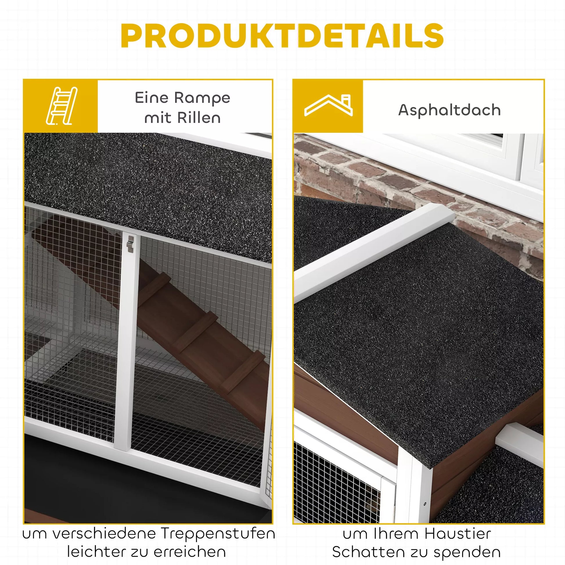 Šis lauko namelis smulkiesiems gyvūnams puikiai tinka nykštukiniams triušiams, jūrų kiaulytėms ir kitiems panašaus dydžio gyvūnams. Šis prabangus medinis nykštukinių triušių namelis suteikia saugumą ir laisvę. Viršutinė dalis skirta privatumui ir ramybei, o apatinė dalis suteikia daugiau erdvės judėti ir žaisti. Padovanokite savo kailiniam draugui patogią gyvenamąją erdvę iš !