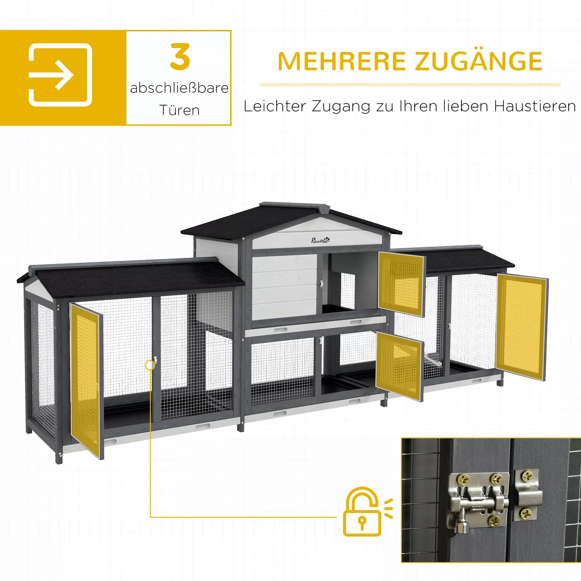 - ✔ Kelios užrakinamos durys, kad jūsų gyvūnai būtų saugūs