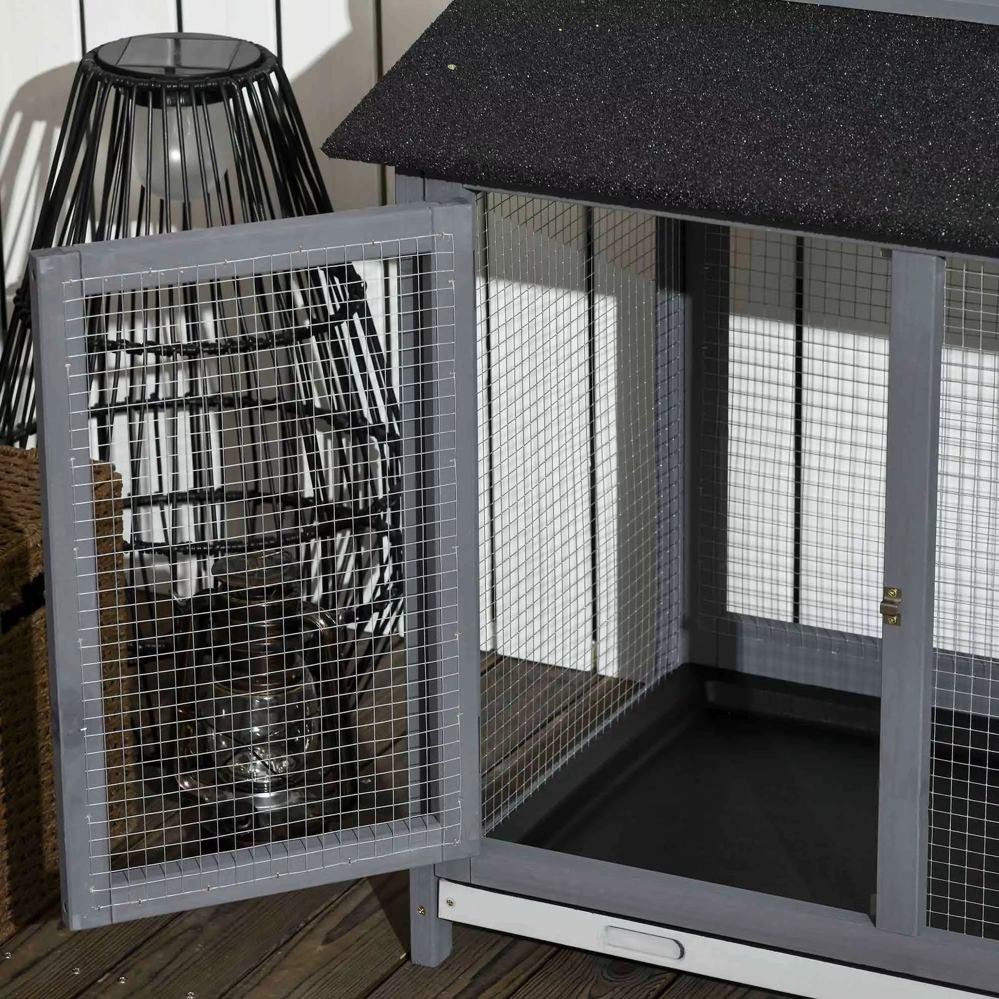 - ✔ Tvirtas pušies medžio rėmas ir asfaltinis stogas, skirtas naudoti lauke