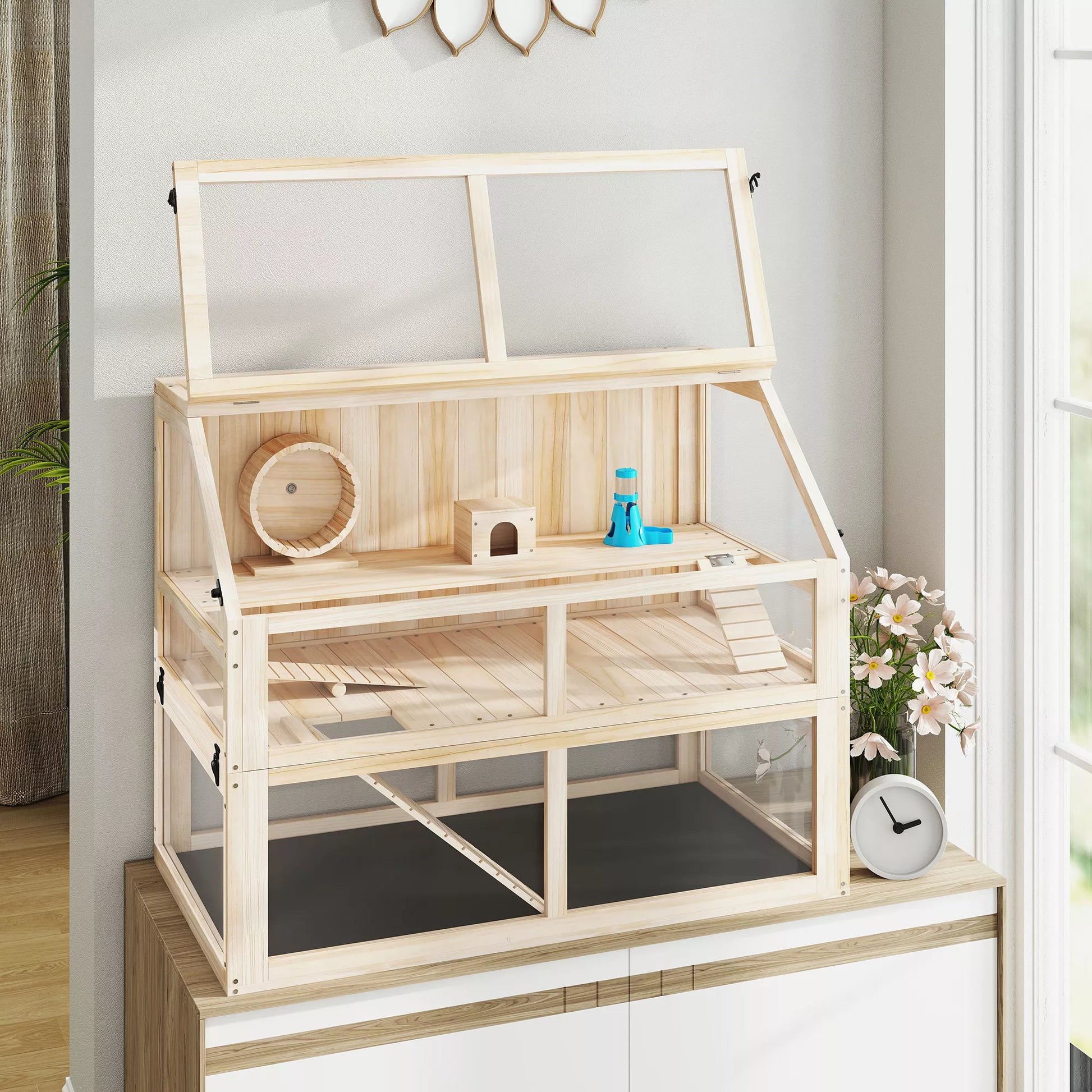 - ✔ Užsegimai leidžia lengvai valyti ir prižiūrėti žiurkėno narvelį