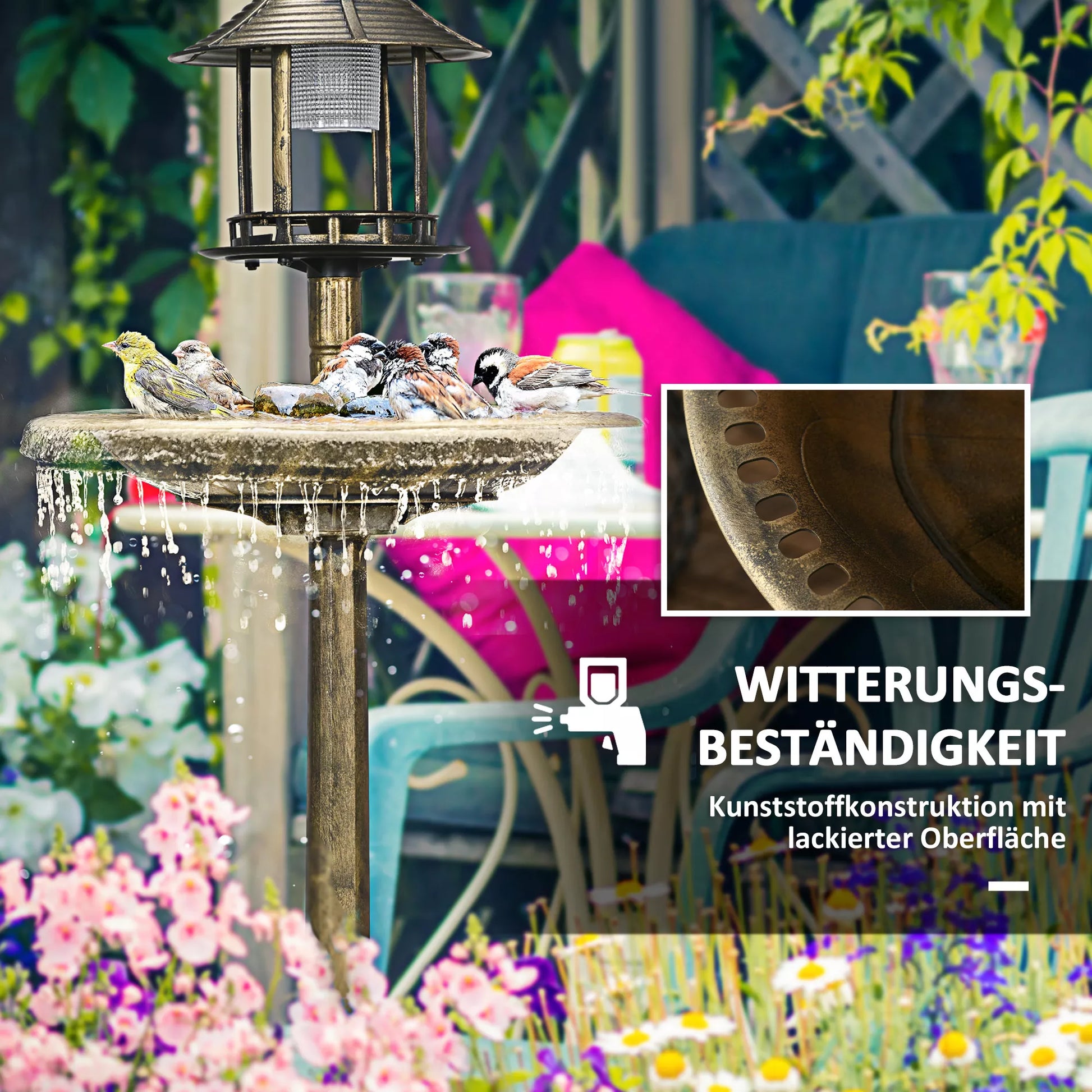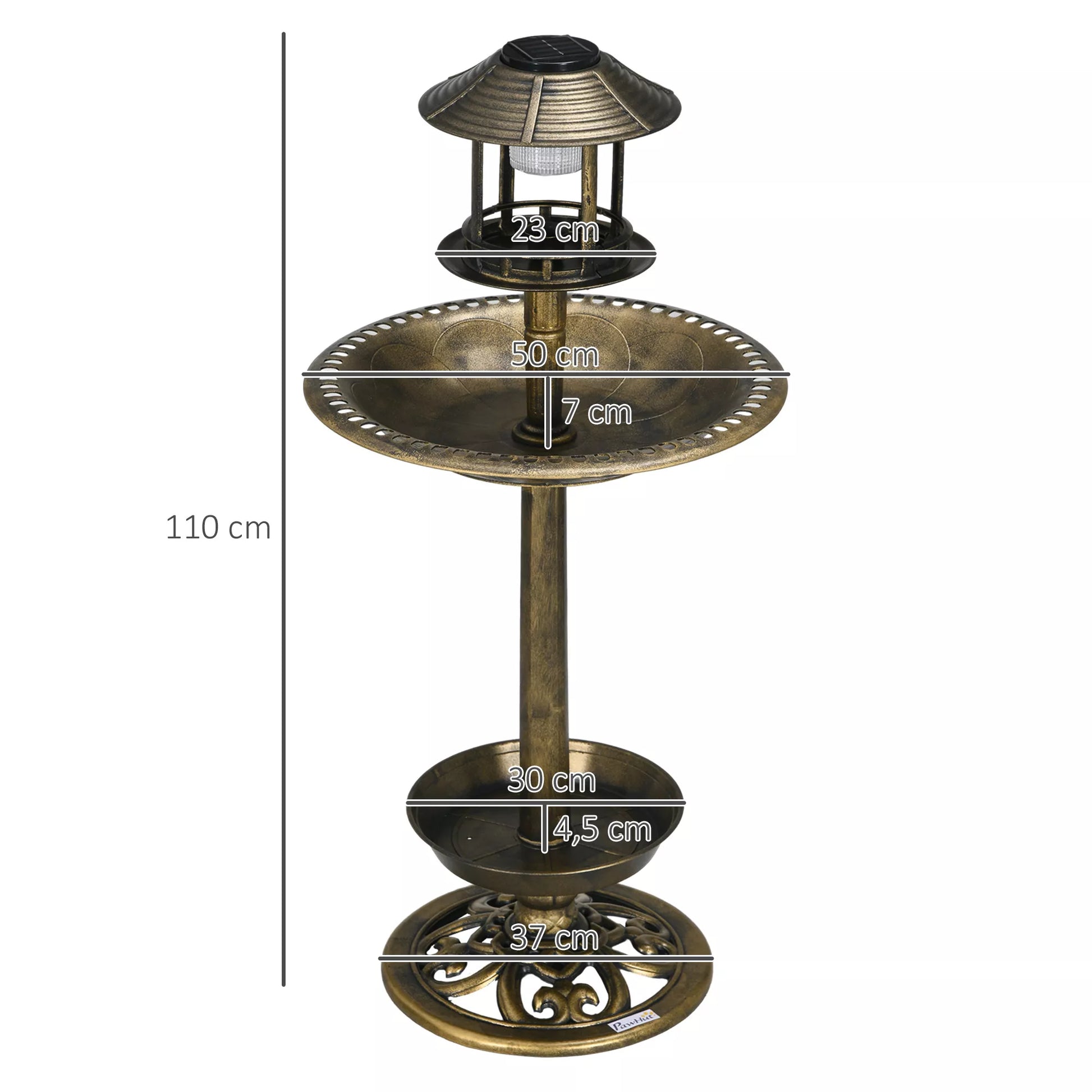 Paukščių girdykla Paukščių namelis Lesyklė, atspari oro sąlygoms, 2 dubenėliai, vintage dizainas, 50 x 50 x 110 cm, bronzos spalvos