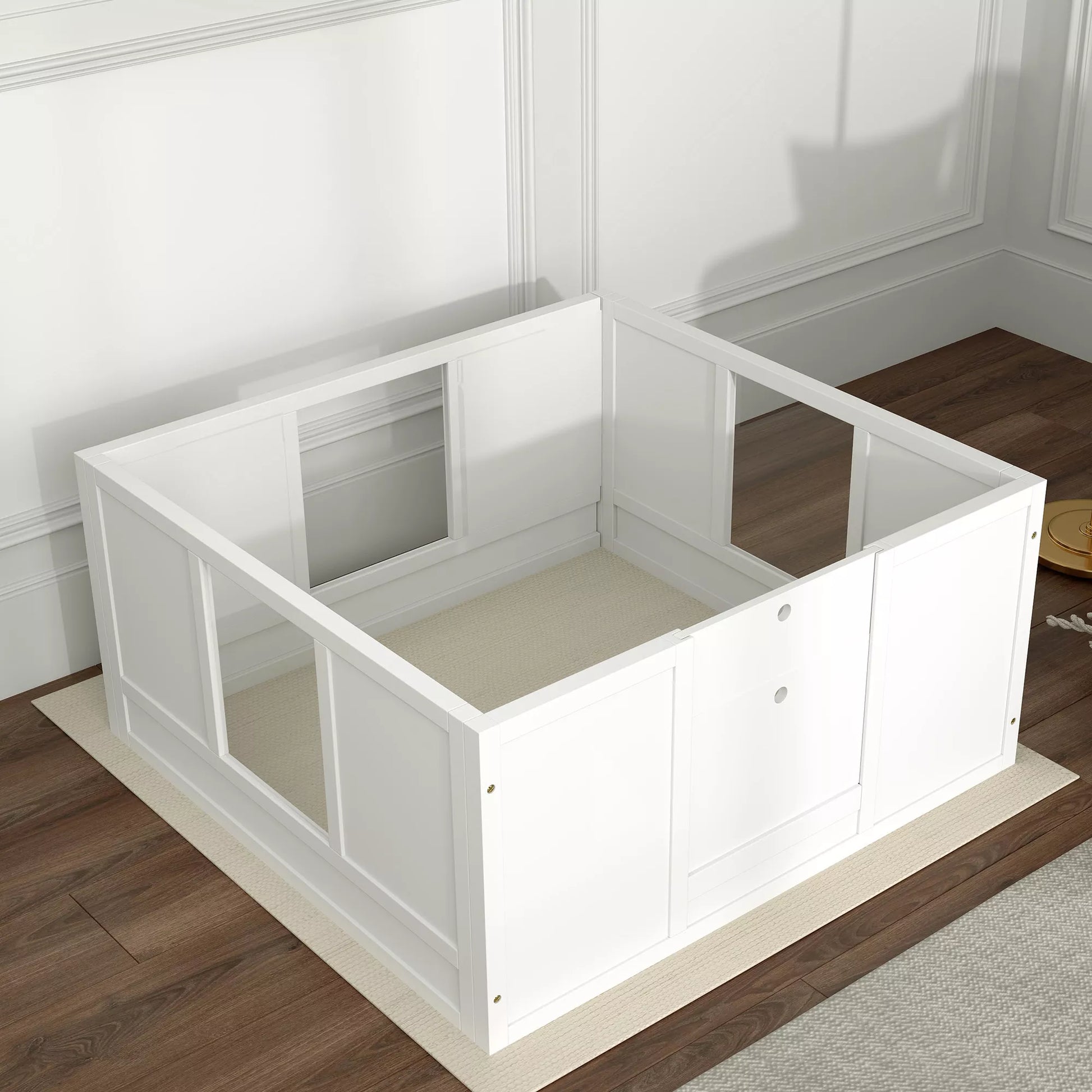 Atklājiet kucēnu rotaļu laukumu — ar mīlestību veidotu patvērumu jūsu četrkājainajam draugam. Suņu rotaļu laukumam ir regulējama ieeja ar noņemamiem paneļiem drošai, bet ērtai piekļuvei mātei un kucēniem, kā arī vēja necaurlaidīga un hermētiska konstrukcija maksimālam komfortam. Ideāla vieta, kur rūpēties par savu jauno dzīvnieciņu, ar caurspīdīgu akrila paneli, lai jūs vienmēr varētu sekot līdzi situācijai.