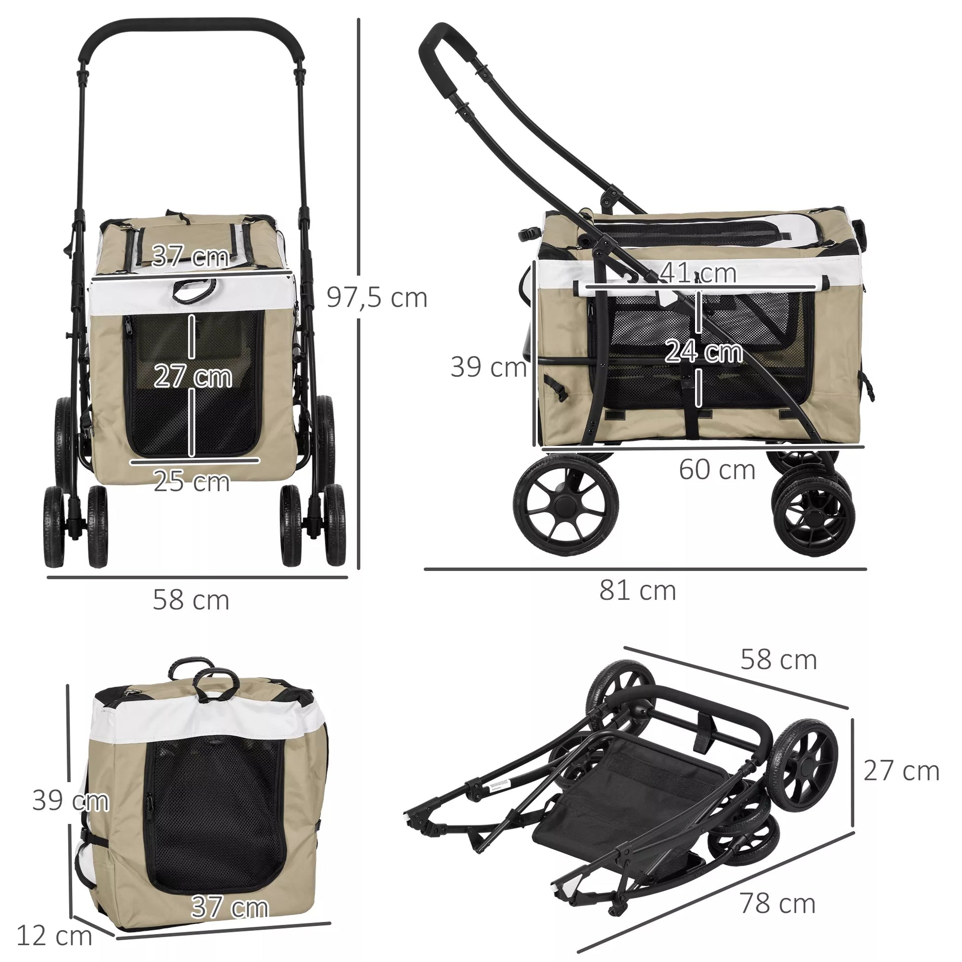 Suņu ratiņi mājdzīvniekiem, saliekami, ar noņemamu grozu, 81 x 58 x 97,5 cm, melni+haki+balti