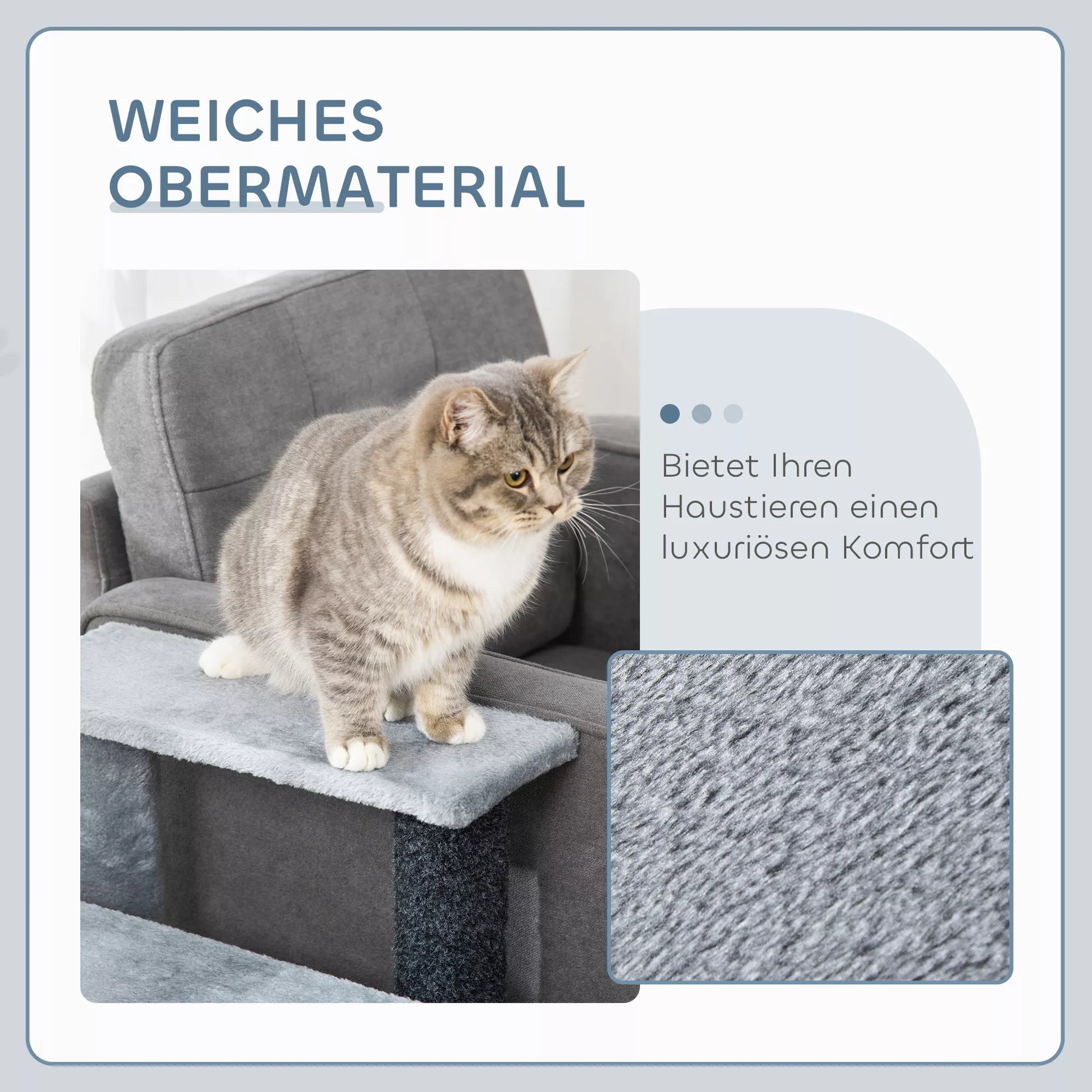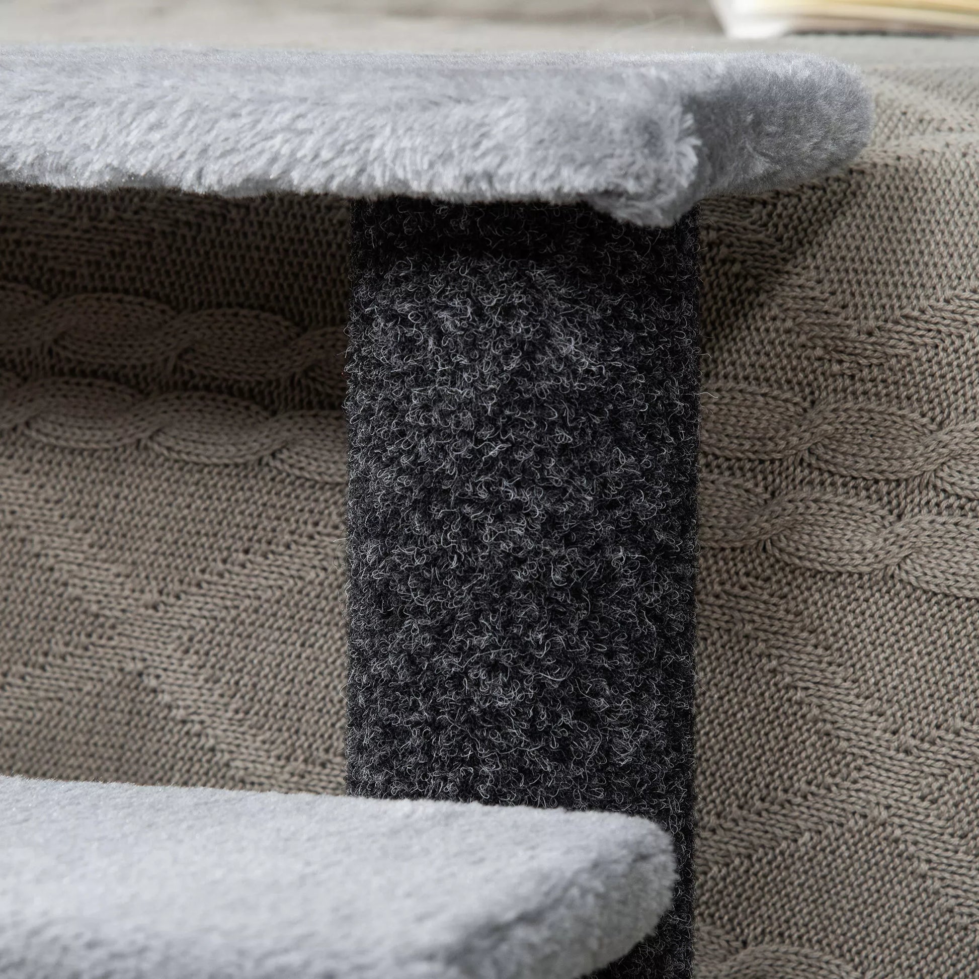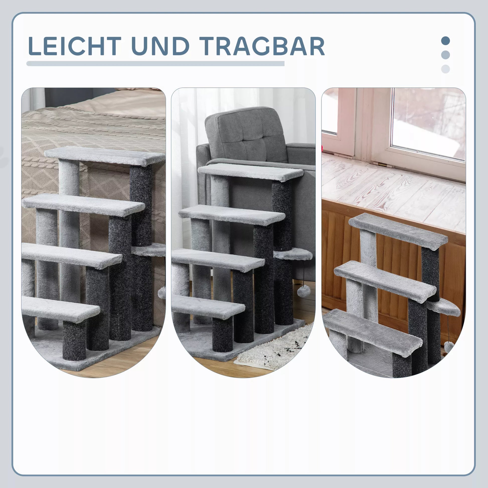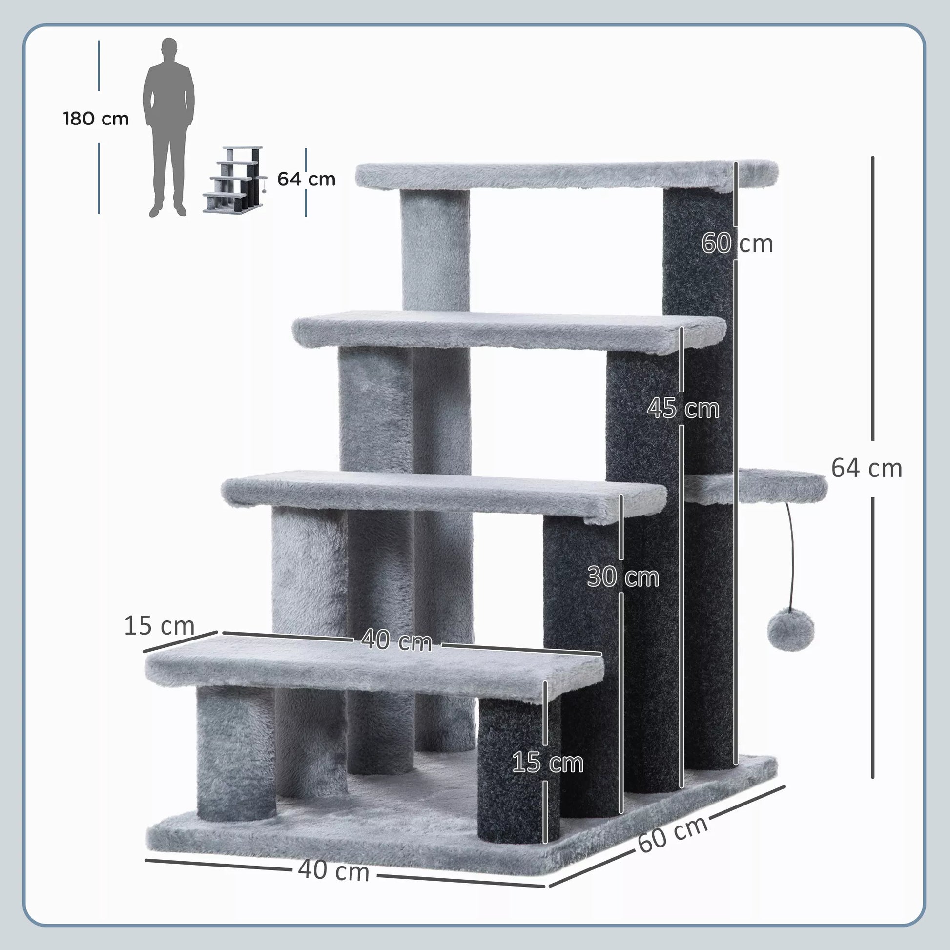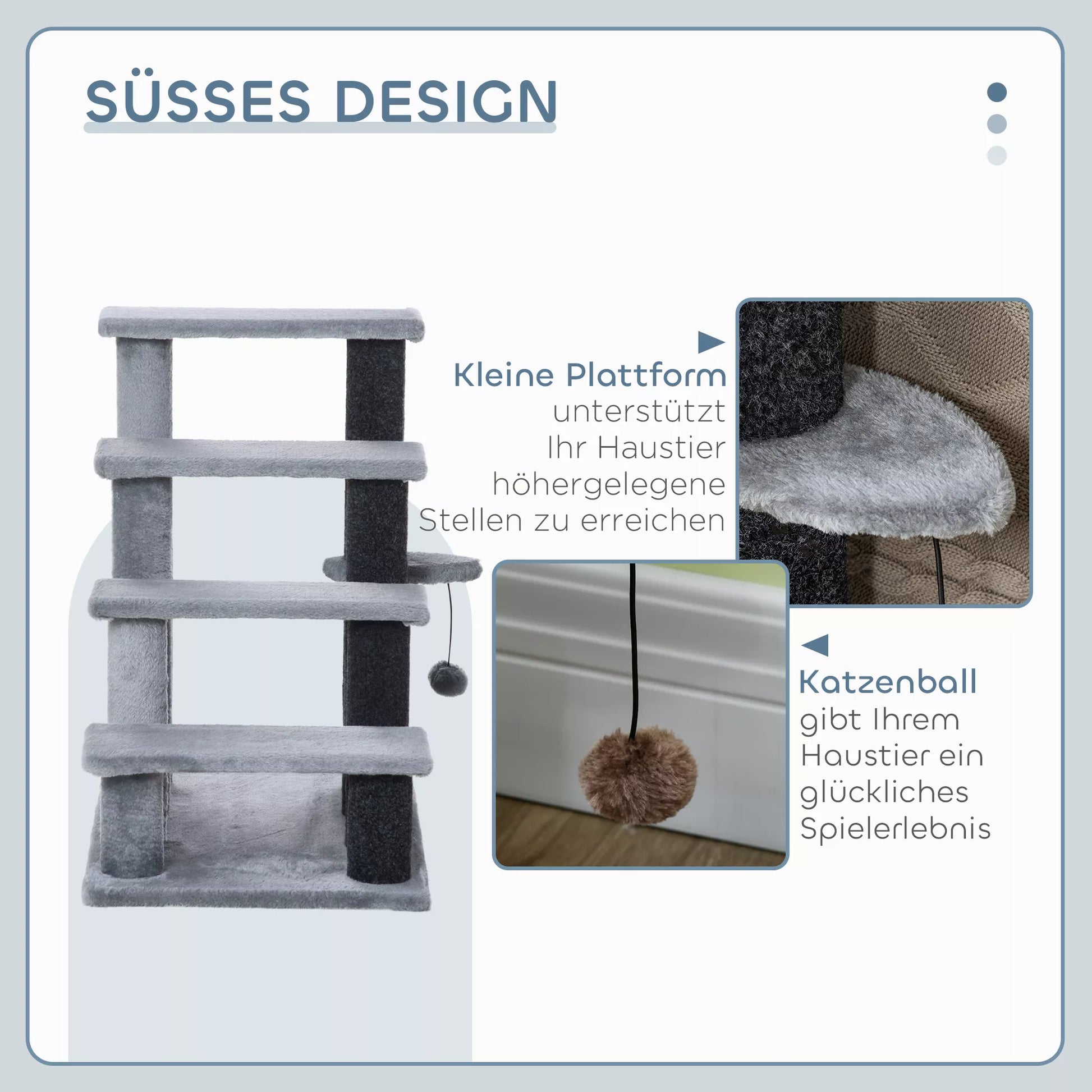 4 pakopų augintinių laipteliai su draskyklėmis ir kamuoliuku šunims ir katėms, skirti katėms iki 5 kg, pliušas, džiutas, pilkos spalvos, 60 x 40 x 64 cm