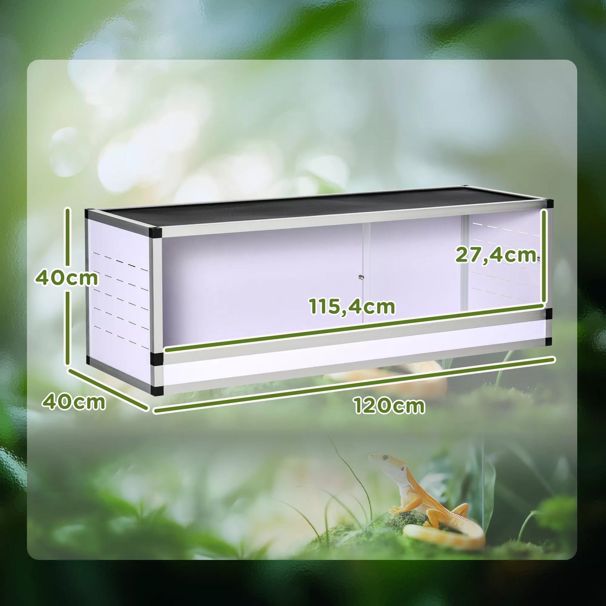 Aliuminio terariumas ropliams, varliagyviams, vorams. Roplių veisimo dėžutė. Tinklelinis terariumas. Baltas+Sidabrinis+Juodas. 120 x 40 x 40 cm