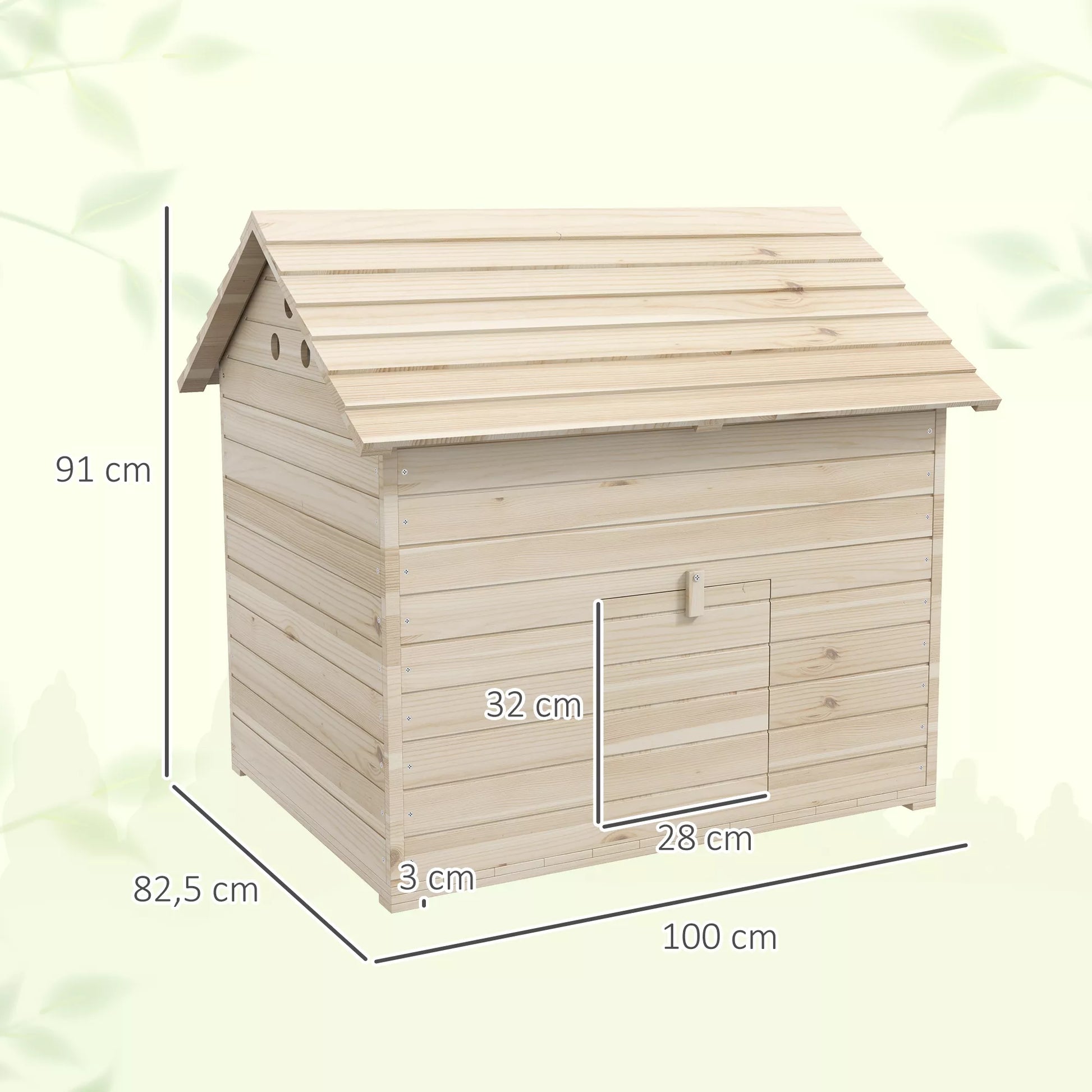 Ančių namelis su atverčiamu stogu, paukštidė su paaukštinta grindimi ir rampe, eglės mediena, 100 x 82,5 x 91 cm