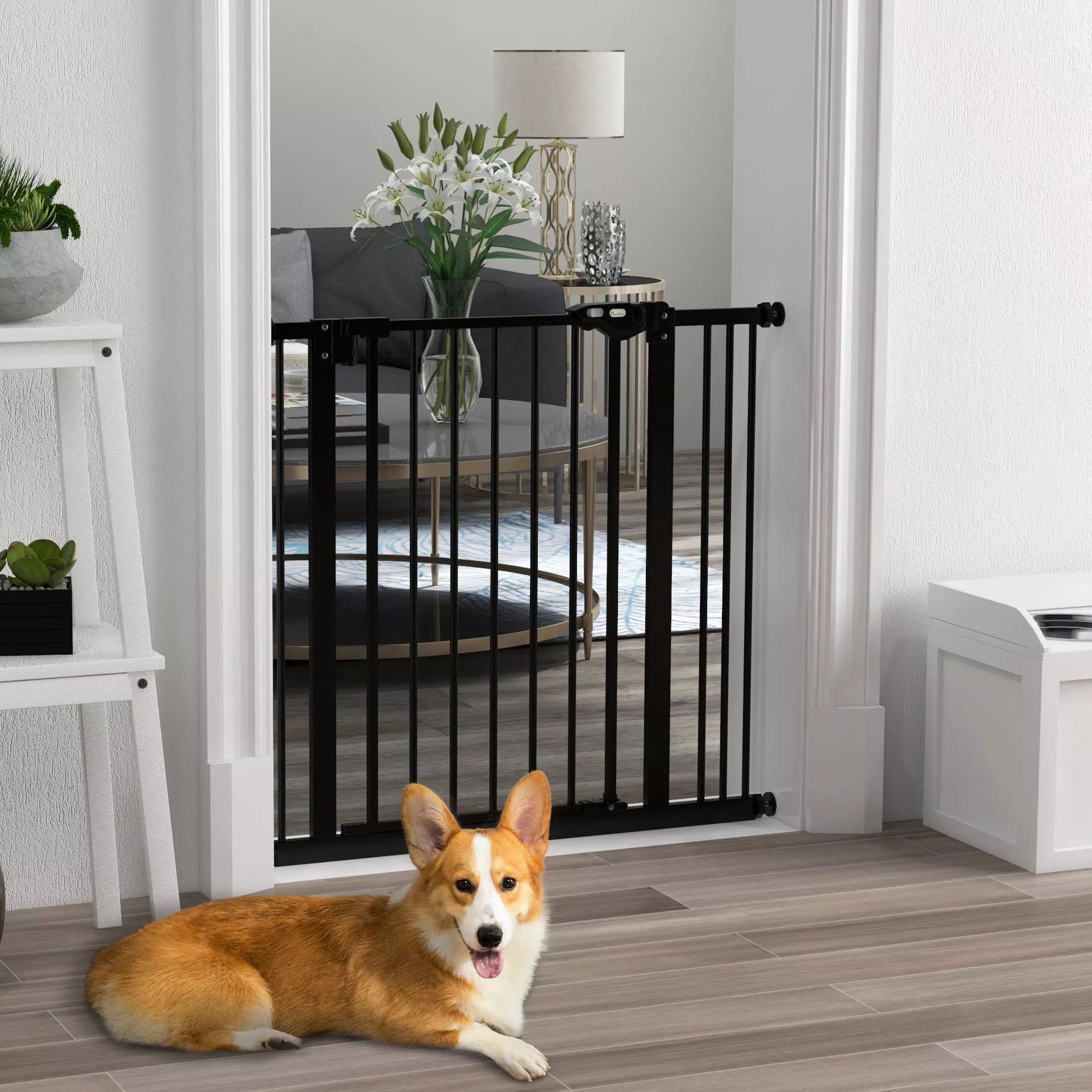 Apsauginiai varteliai šunims, tvorelė, apsauginė tvorelė augintiniams, metalas, plastikas, 74-87 cm, juoda