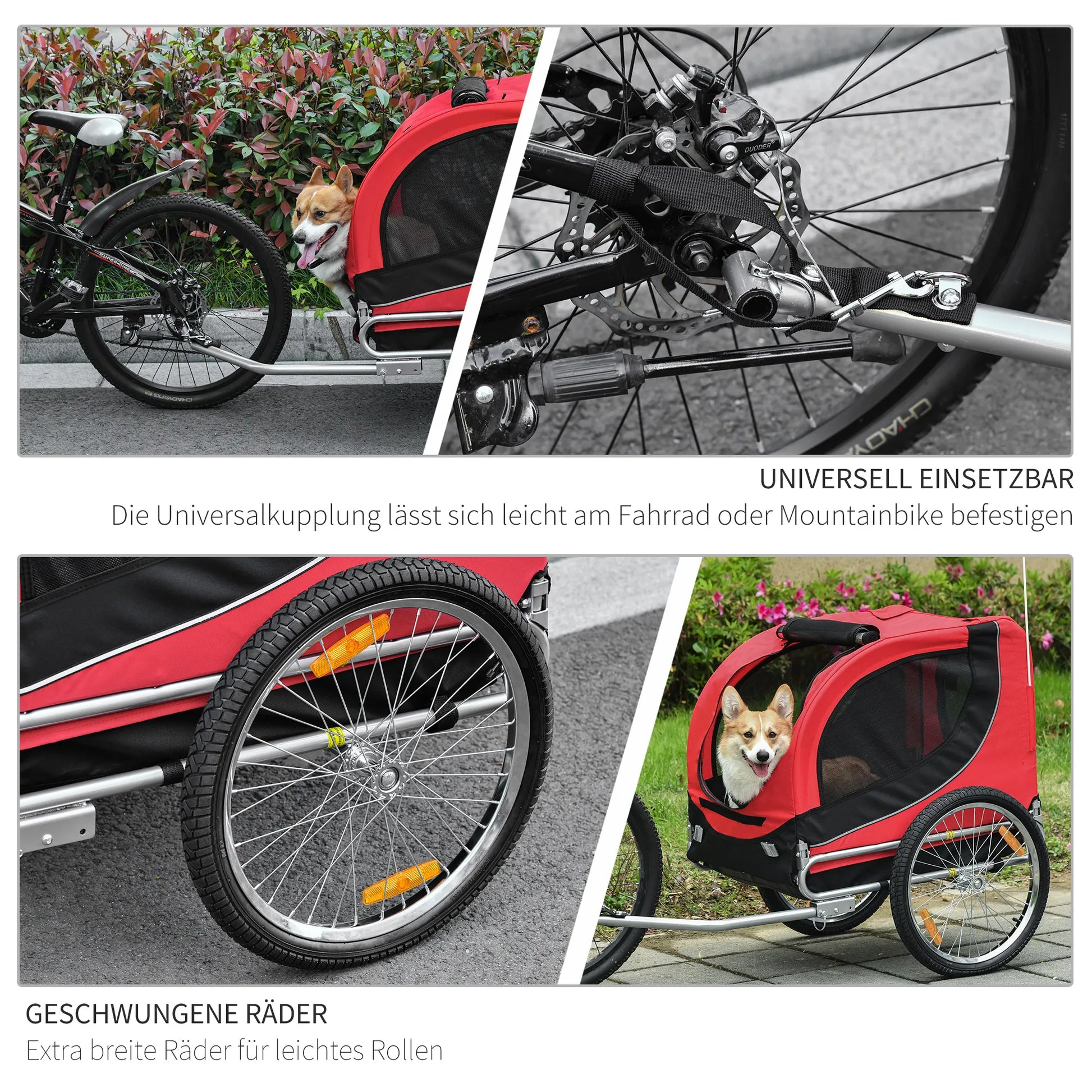 Dviračio priekaba šunims iki 20 kg su universaliu sukabintuvu, plienas, raudona+juoda