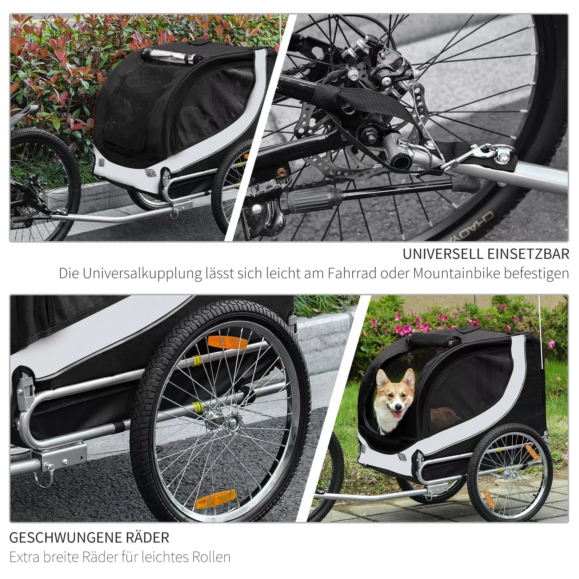 Dviračio priekaba šunims iki 20kg, tinklelio langas, suvyniojama danga, universali jungtis Balta+Juoda
