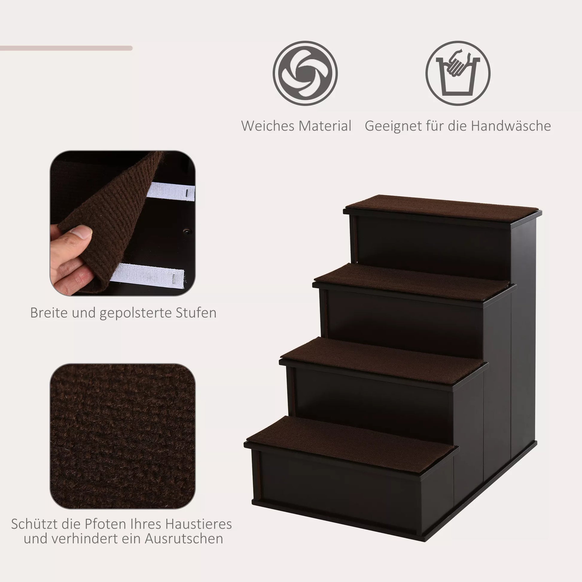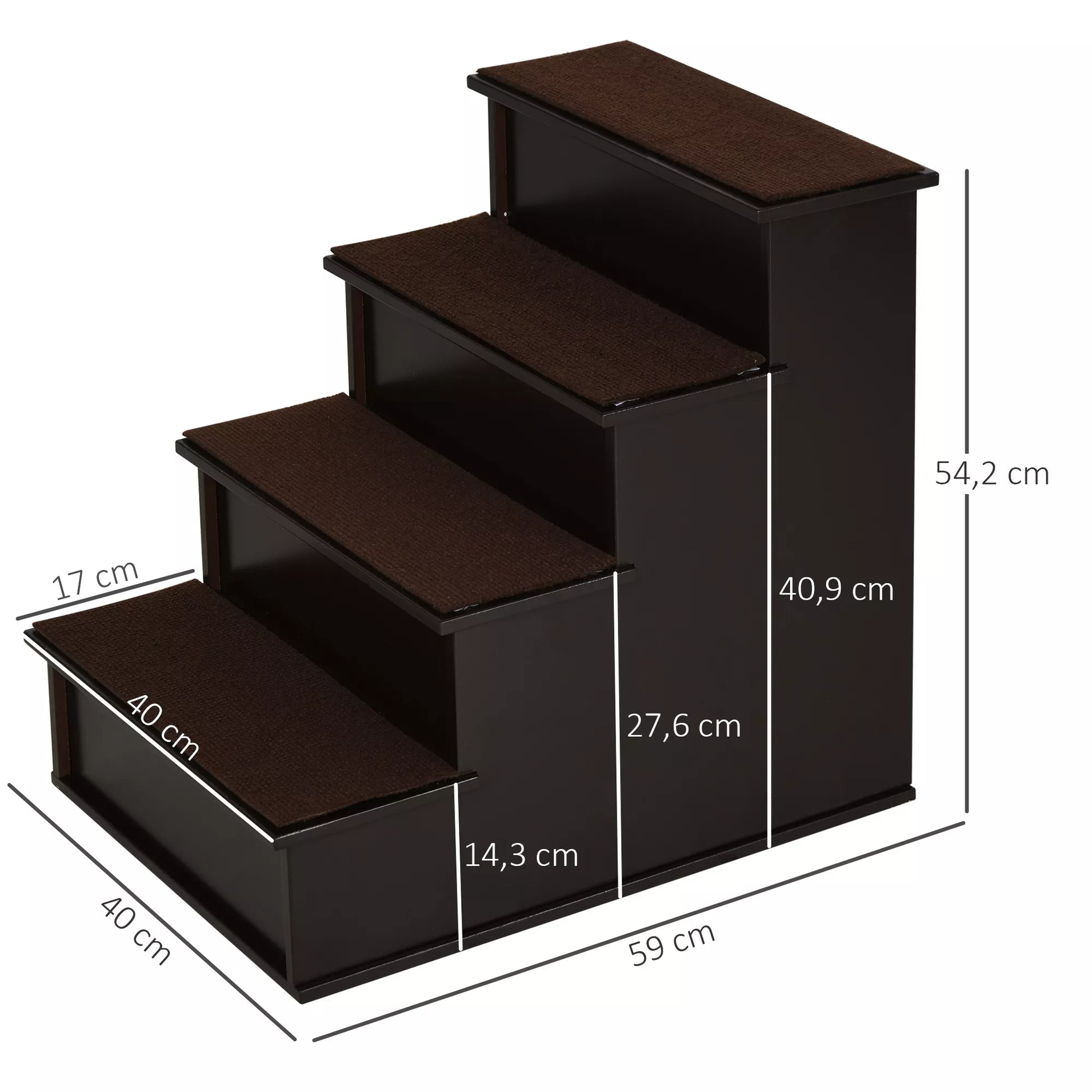 Gyvūnų laipteliai, 4 pakopų, šunims/katėms, su trumpu pliušu, iki 30 kg, 40 x 59 x 54,2 cm, tamsiai rudos spalvos