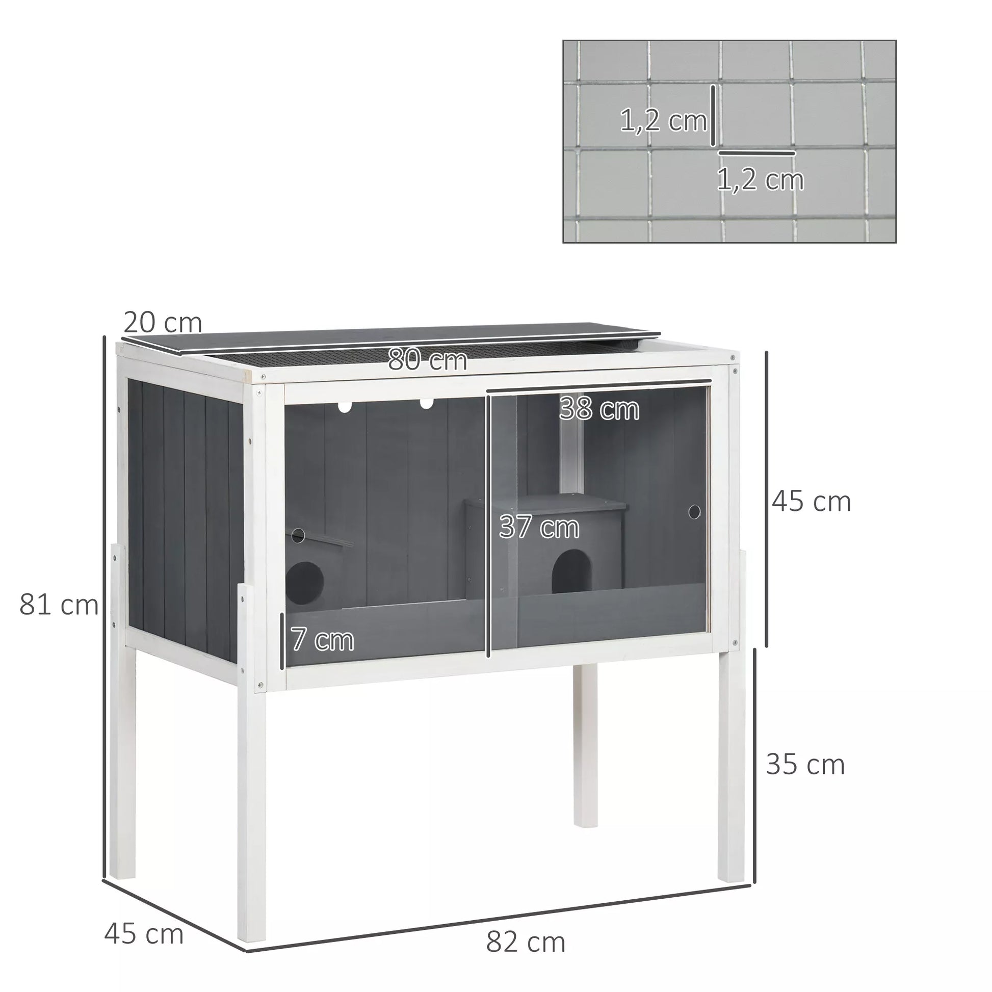 Hamsterio narvas, 3000 cm² nykštukinių žiurkėnų narvas iš medžio ir metalo, su 2 nameliais, akrilo stumdomomis durimis, stabilus, saugus, Pilka+Balta