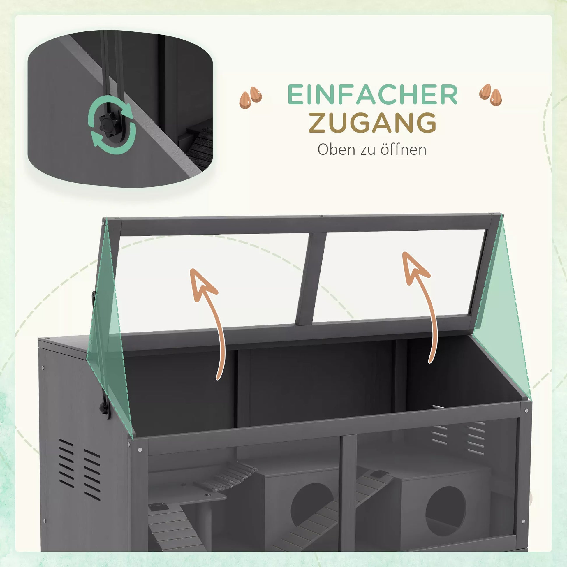 • ✔ Priekinis smulkių gyvūnėlių namelio skydelis pagamintas iš skaidrios medžiagos, leidžiančios lengvai stebėti jūsų augintinio gyvenimą