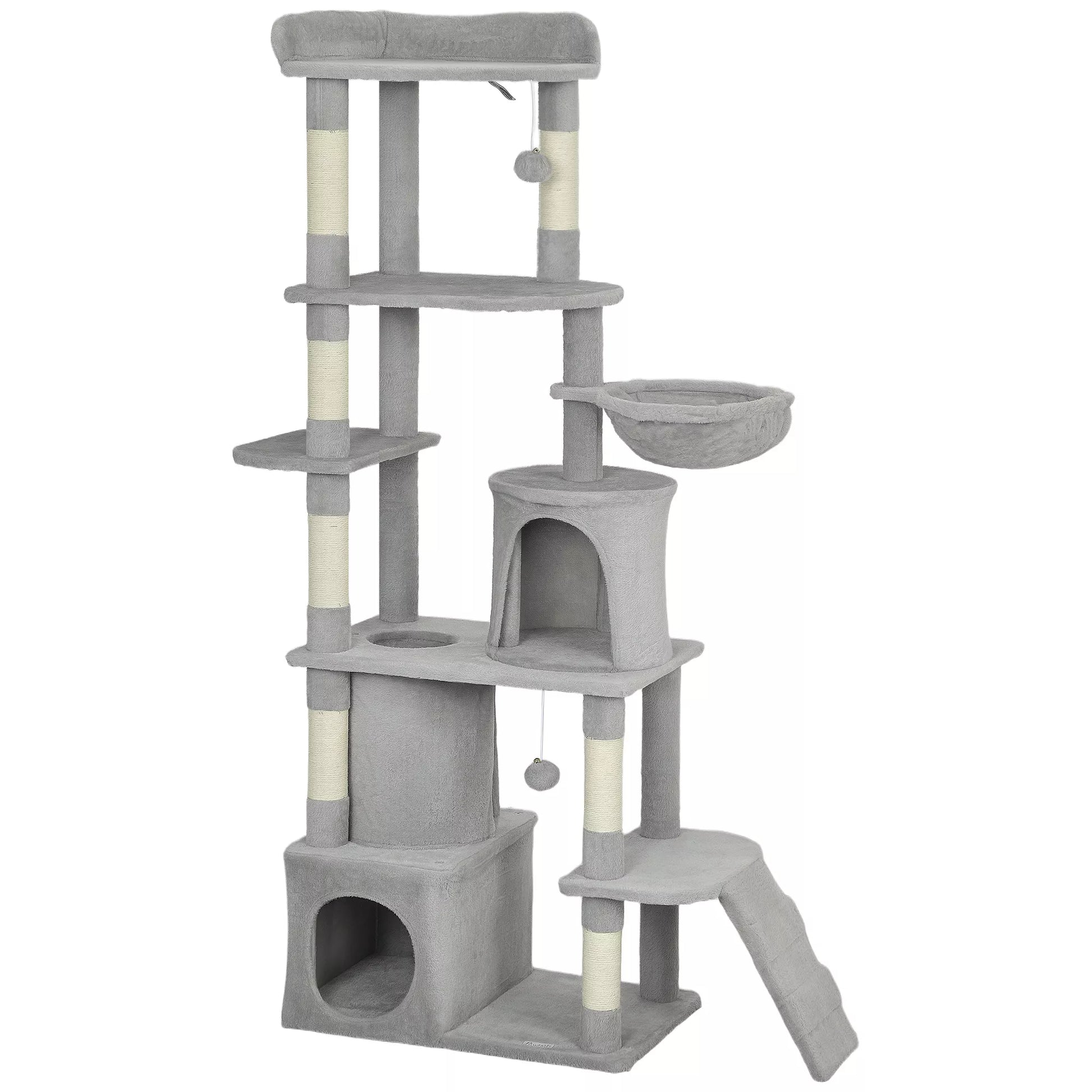 - ✔ Šis 170 cm aukščio universaliausias universalus aktyvumo draskymo medis turi poilsio vietą, namukus ir hamakus