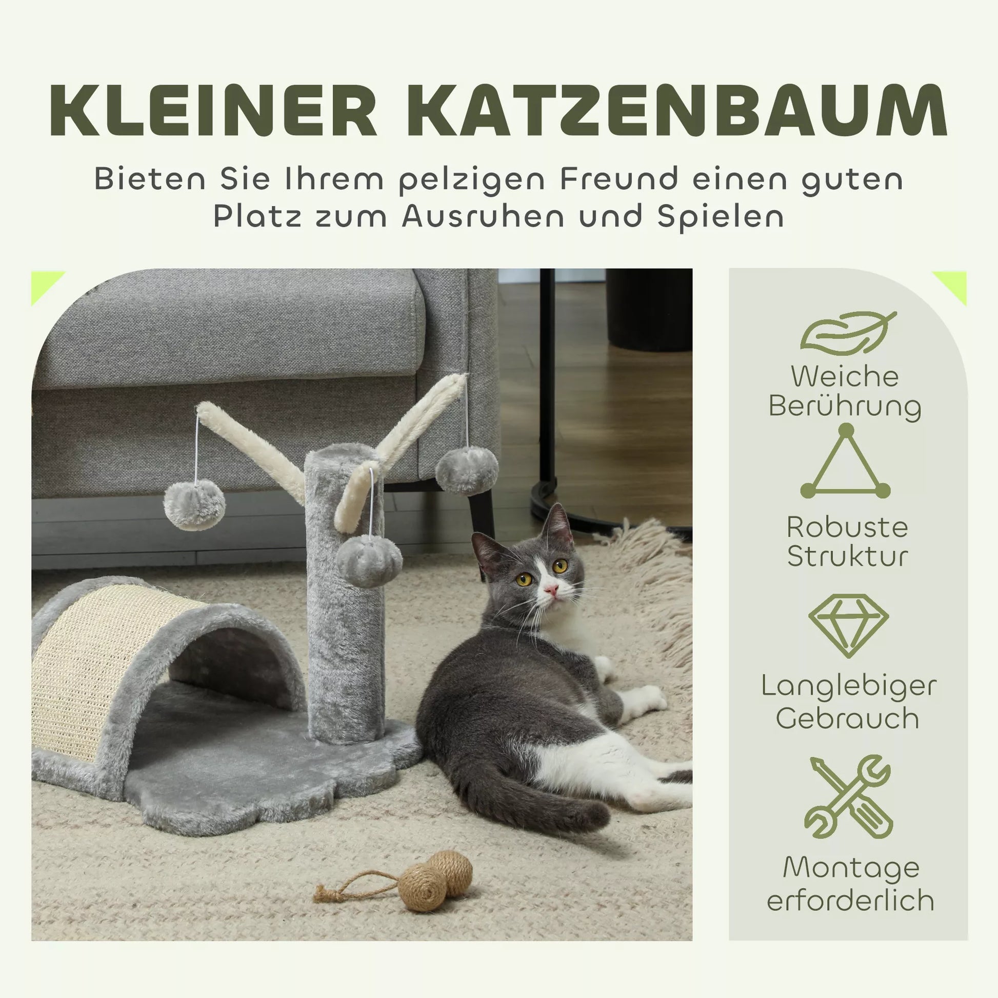 Kačių draskyklė 40 cm Mažas kačių bokštelis su guoliu, 2 žaisliniais kamuoliukais, draskomuoju kilimėliu, kačių laipiojimo medis, mažoms ir didelėms katėms, šviesiai pilkas
