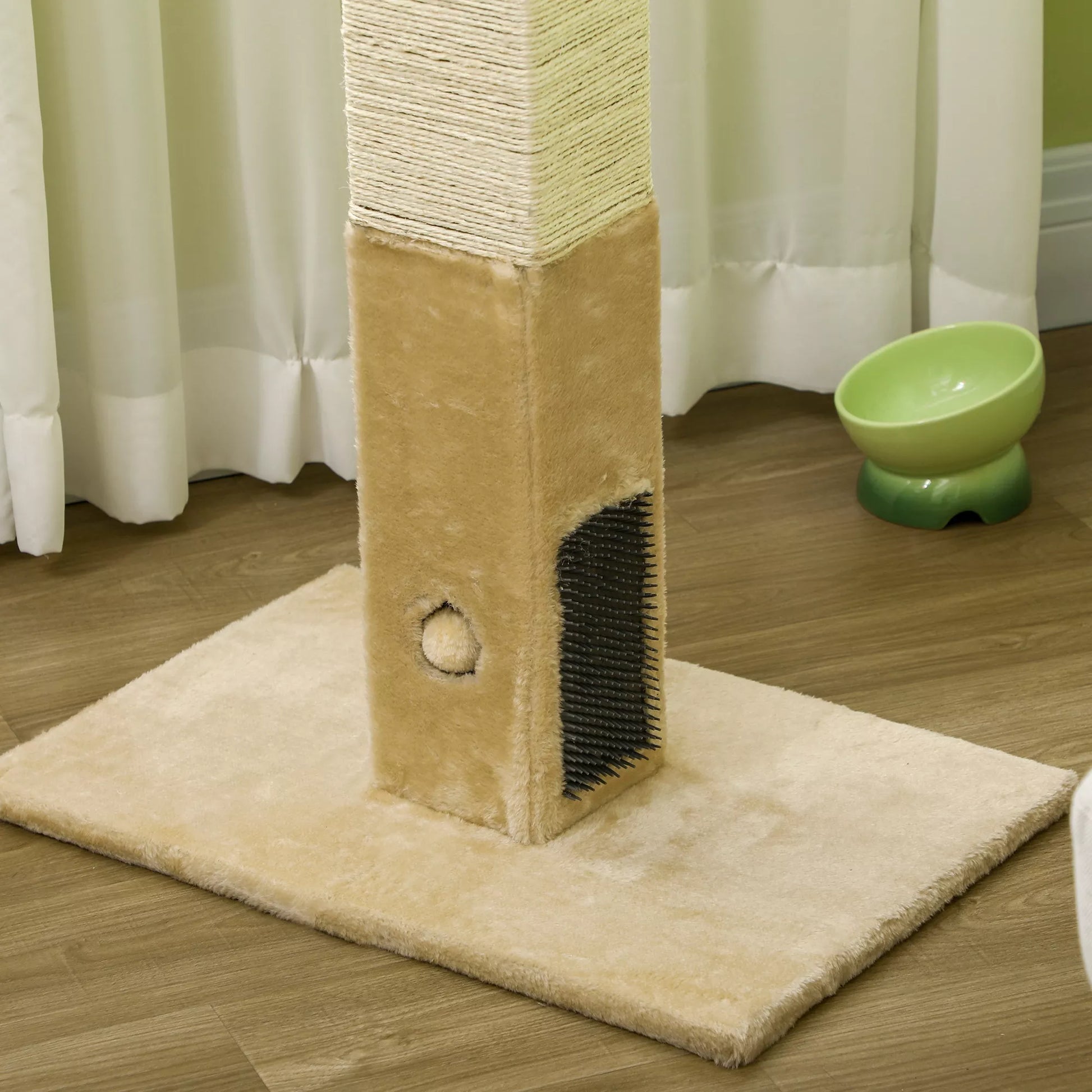 Kačių draskyklė, draskymo stulpas, 79 cm kačių medis su džiuto virve, su žaisliuku, pliušas, smėlio spalvos