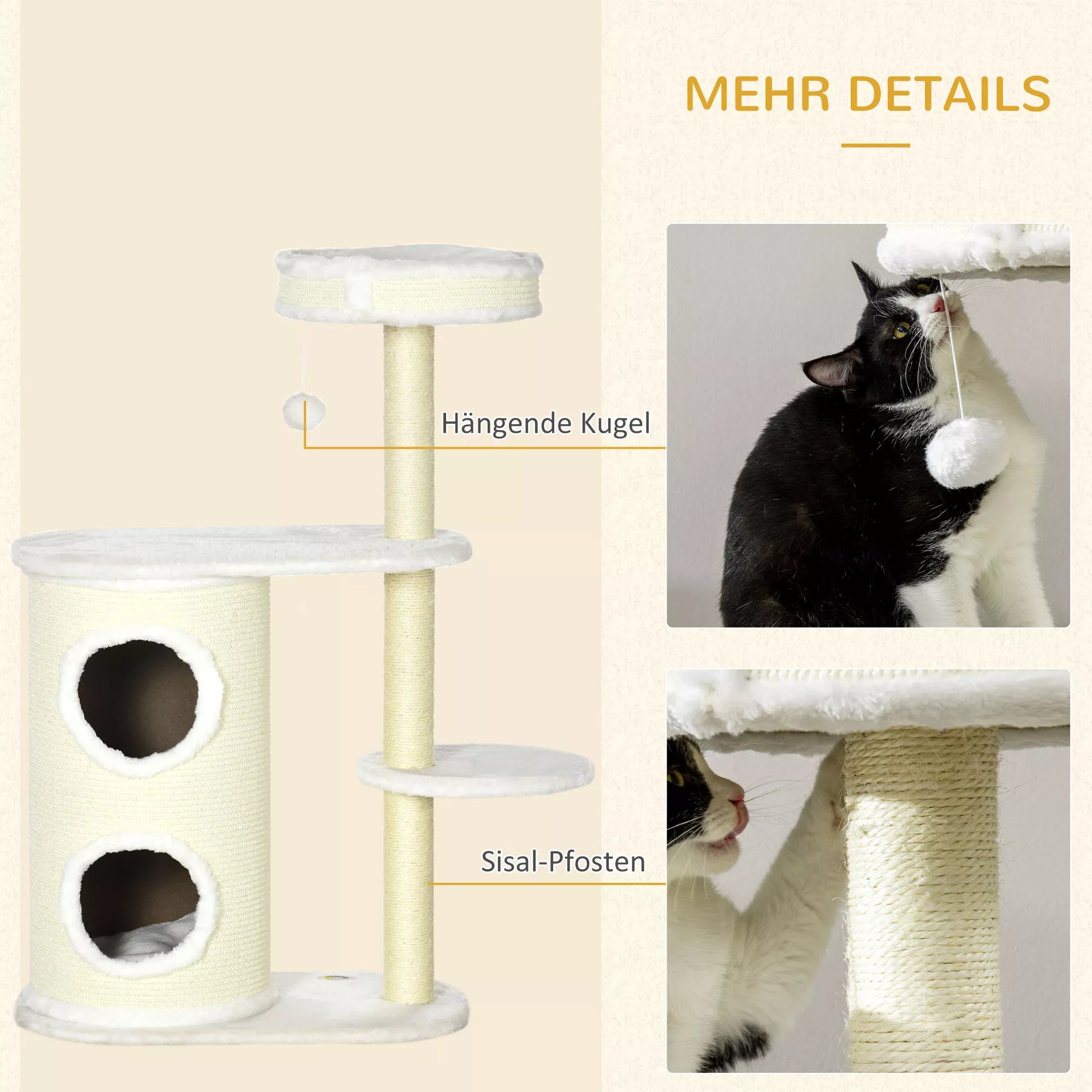 Kačių draskyklė su draskymo statine, 1 katės guoliu ir kačių žaislais, 59 cm x 35 cm x 100 cm, kreminės baltos spalvos