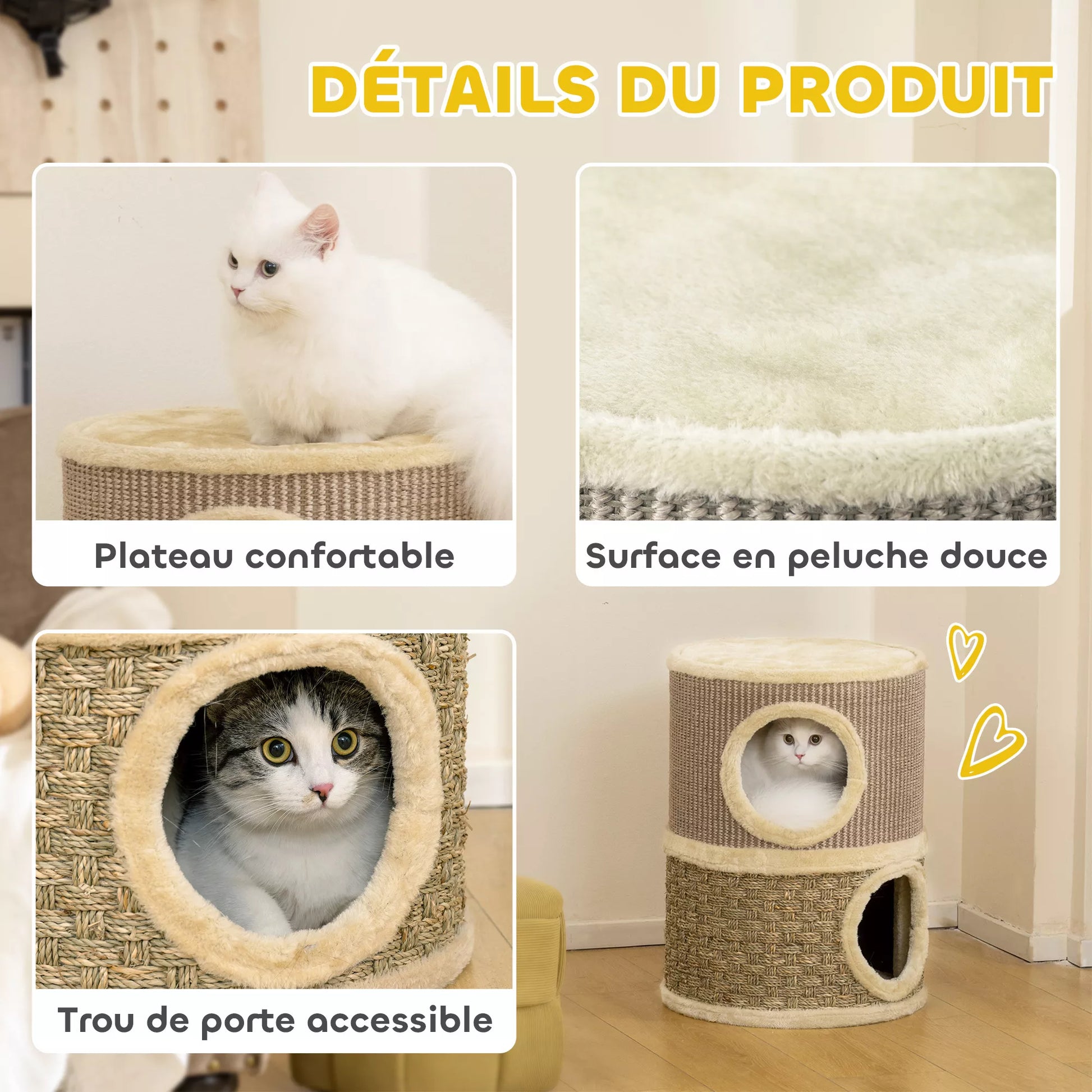 Ši katės namelis, padengtas sizalio ir dumblių virvėmis, tikrai taps nauja Jūsų katės mėgstamiausia vieta. Jis suteikia puikią vietą žaisti, miegoti ir slėptis. Viršutinis šio namelio sluoksnis yra padengtas minkšta ir malonia medžiaga, užtikrinančia puikų komfortą ilsintis.