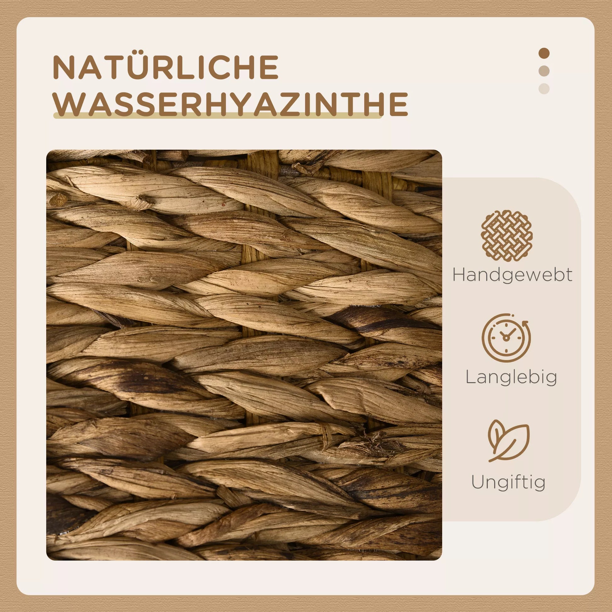 - ✔ Medžiaga: Plienas, vandens hiacintas, aksominis audinys (100 % poliesteris)