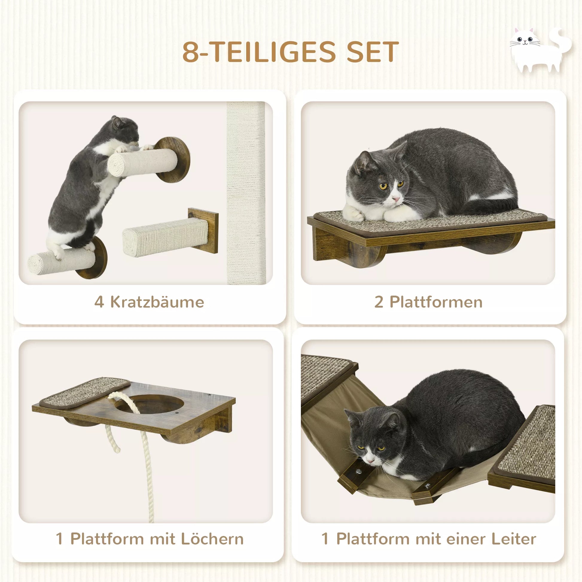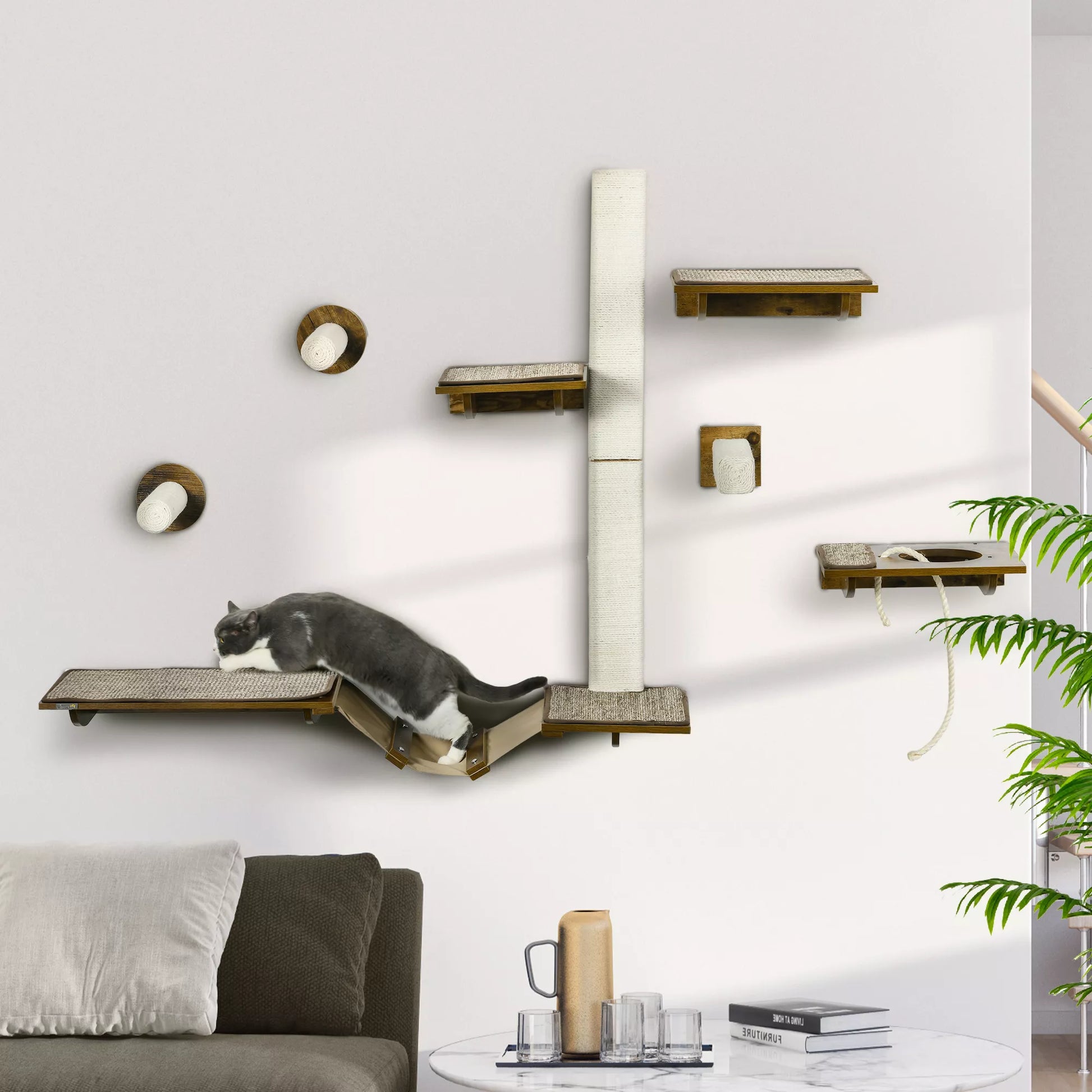 Atraskite idealų sprendimą katėms auginantiems gyventojams, kuriuose trūksta vietos – novatoriškus sieninius katės lentynų komplektus. Šis aštuonių skirtingų elementų sieninių laipiojimo priemonių komplektas leidžia jūsų katėms laipioti, draskyti ir ilsėtis, neužimant brangios grindų erdvės. Tvirti sizalio paviršiai suteikia galimybę draskyti ir taip apsaugo jūsų sofas bei kilimus. Šios katės laipiojimo sienelės užtikrina saugų sukibimą ir paverčia bet kurį kambarį stilingu kačių rojaus kampeliu.
