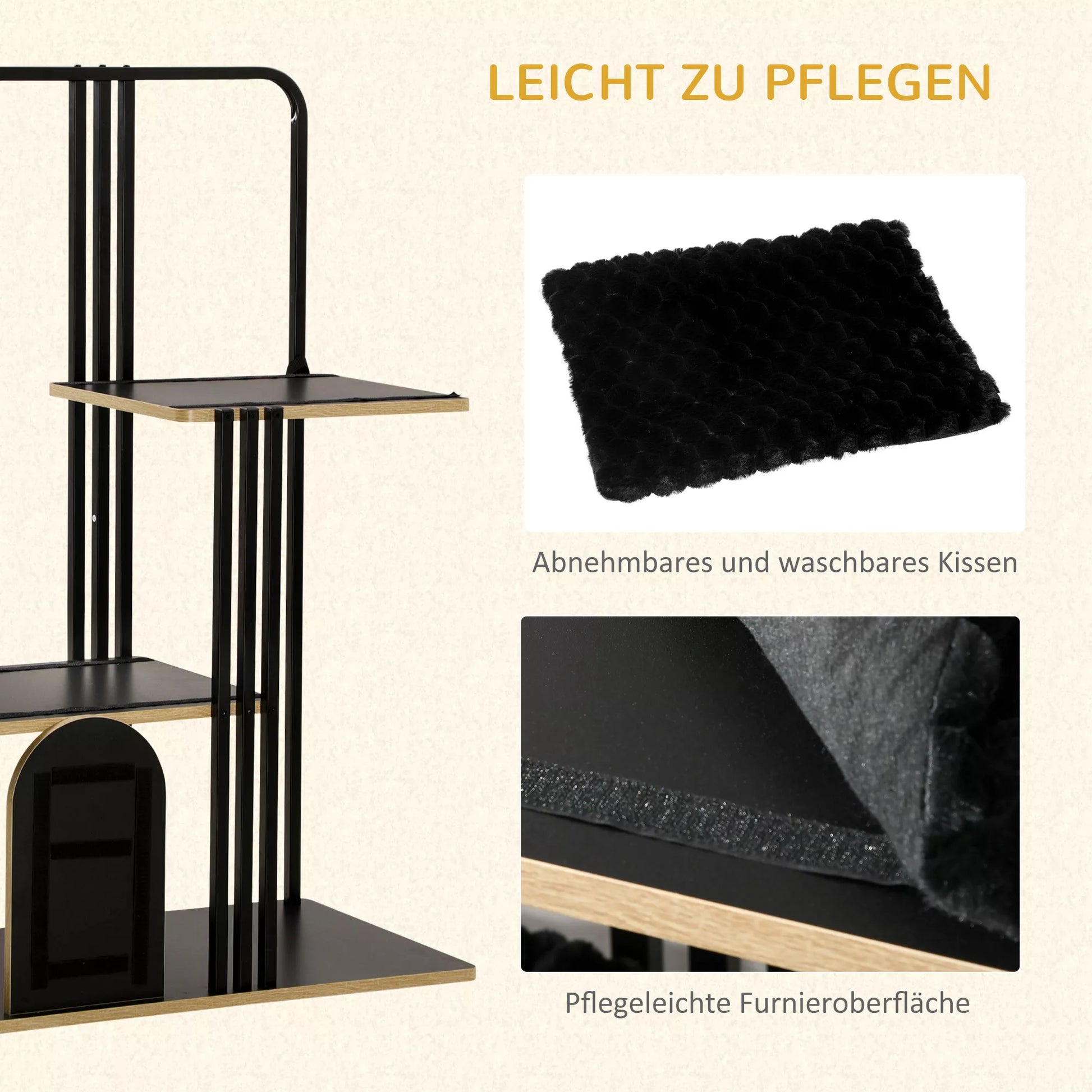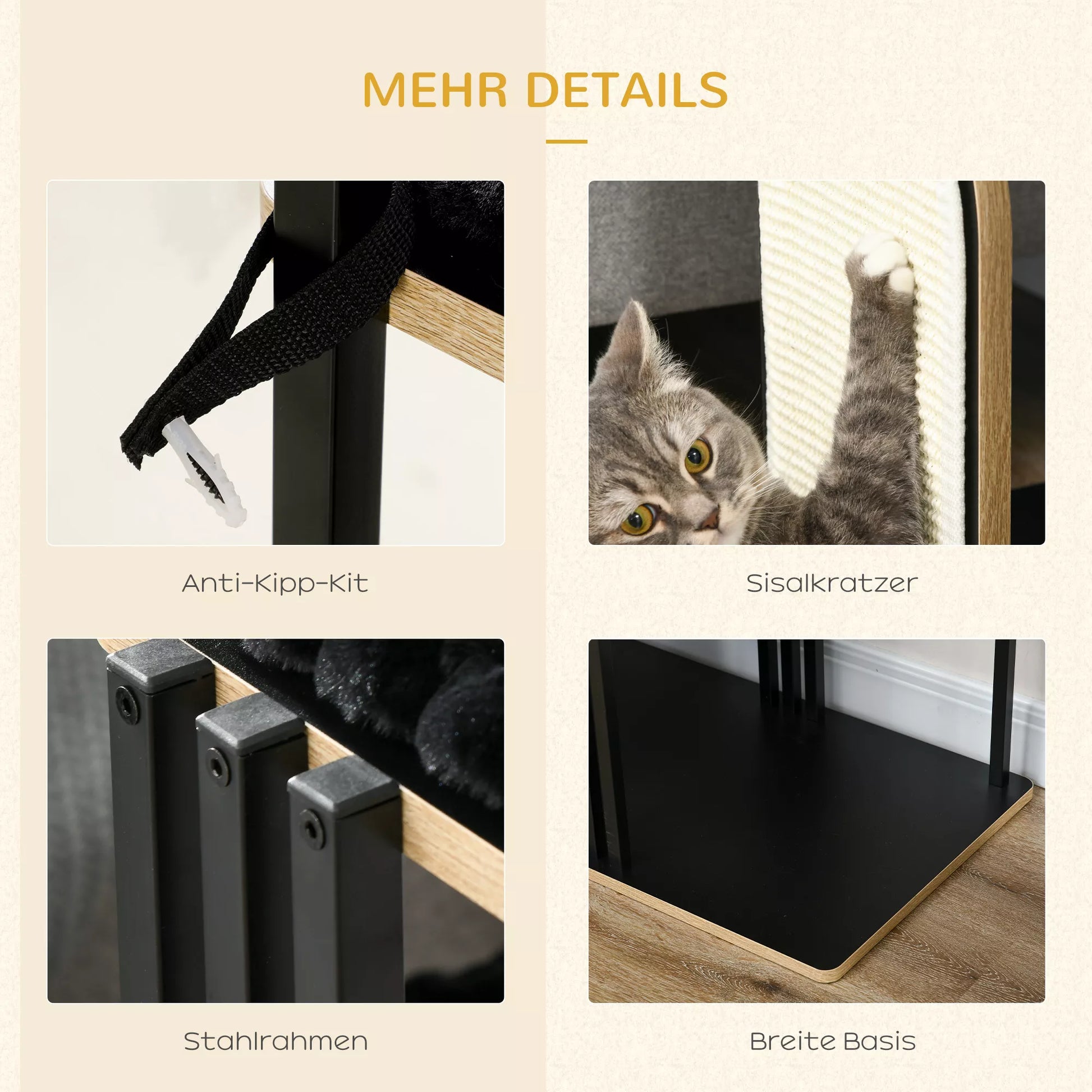 Kačių medis, pramoninio dizaino, 2 platformos, 2 gulimosios pagalvėlės, subraižymo sienelė, plieninis rėmas, juodos spalvos, 85 x 48 x 128 cm