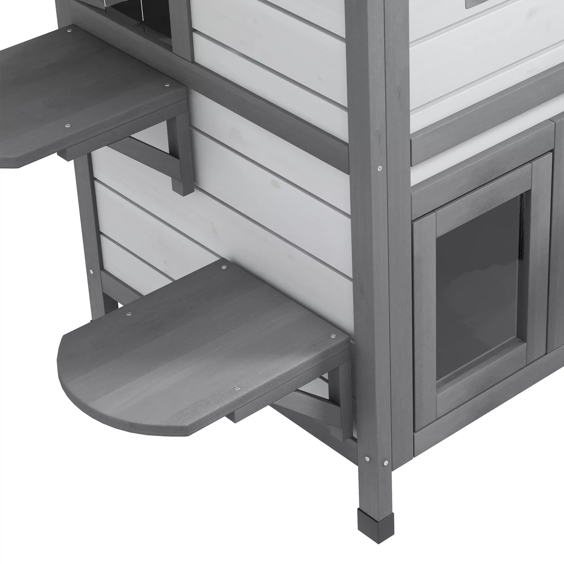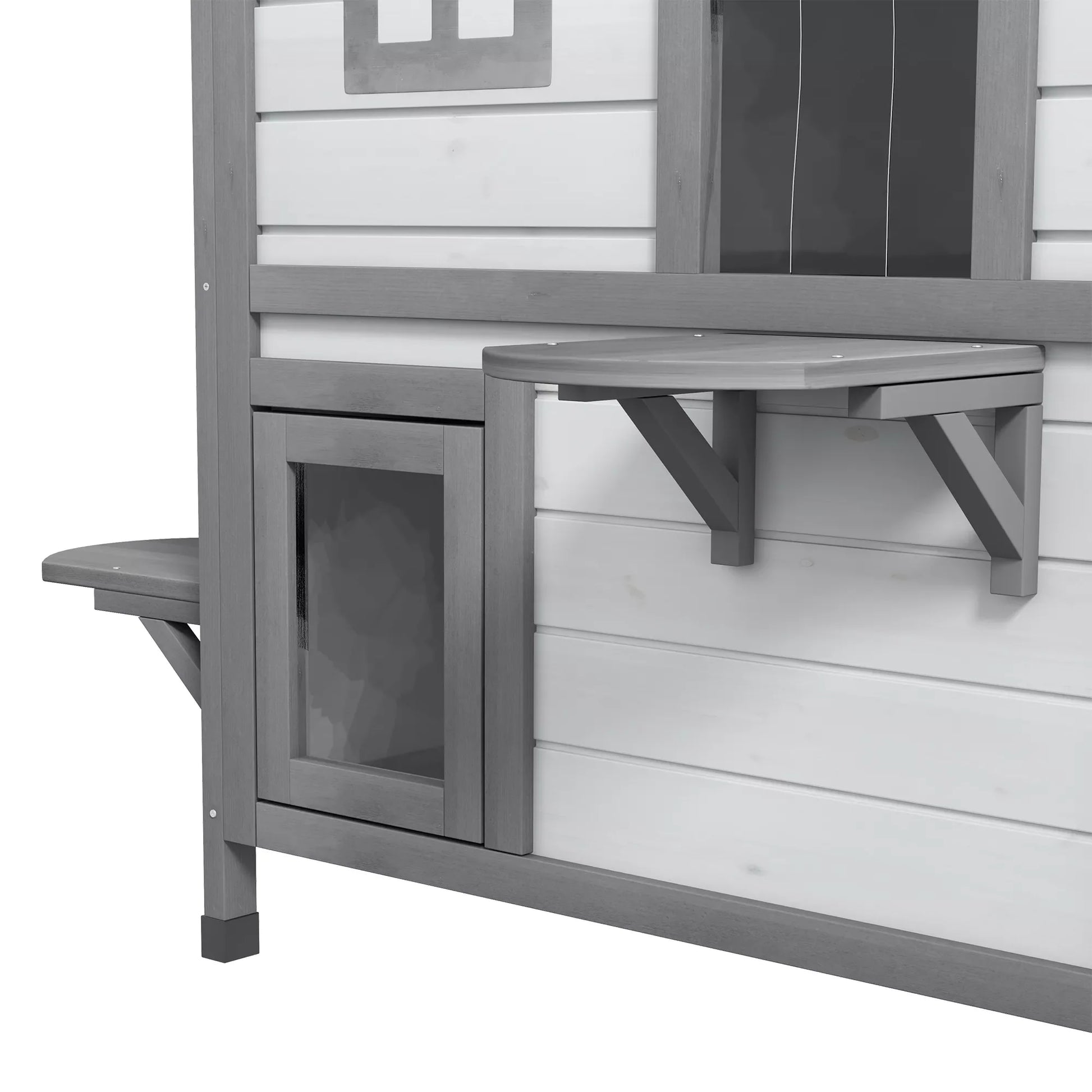 Kačių namelis, Kačių būdelė, Kačių urvelis, 2 aukštai, Atsparus oro sąlygoms, 78,1 cm x 55,2 cm x 90,8 cm, Balta + Pilka