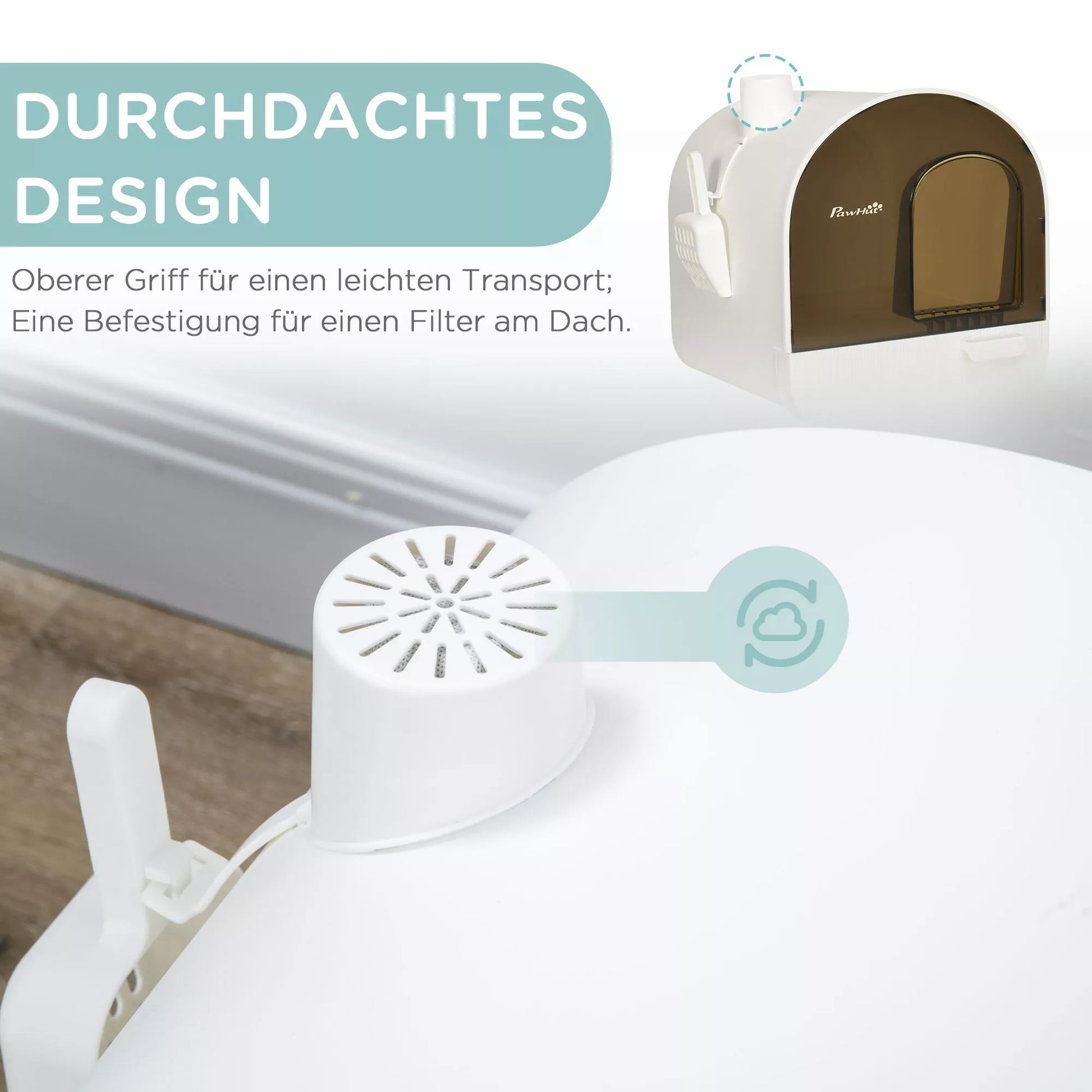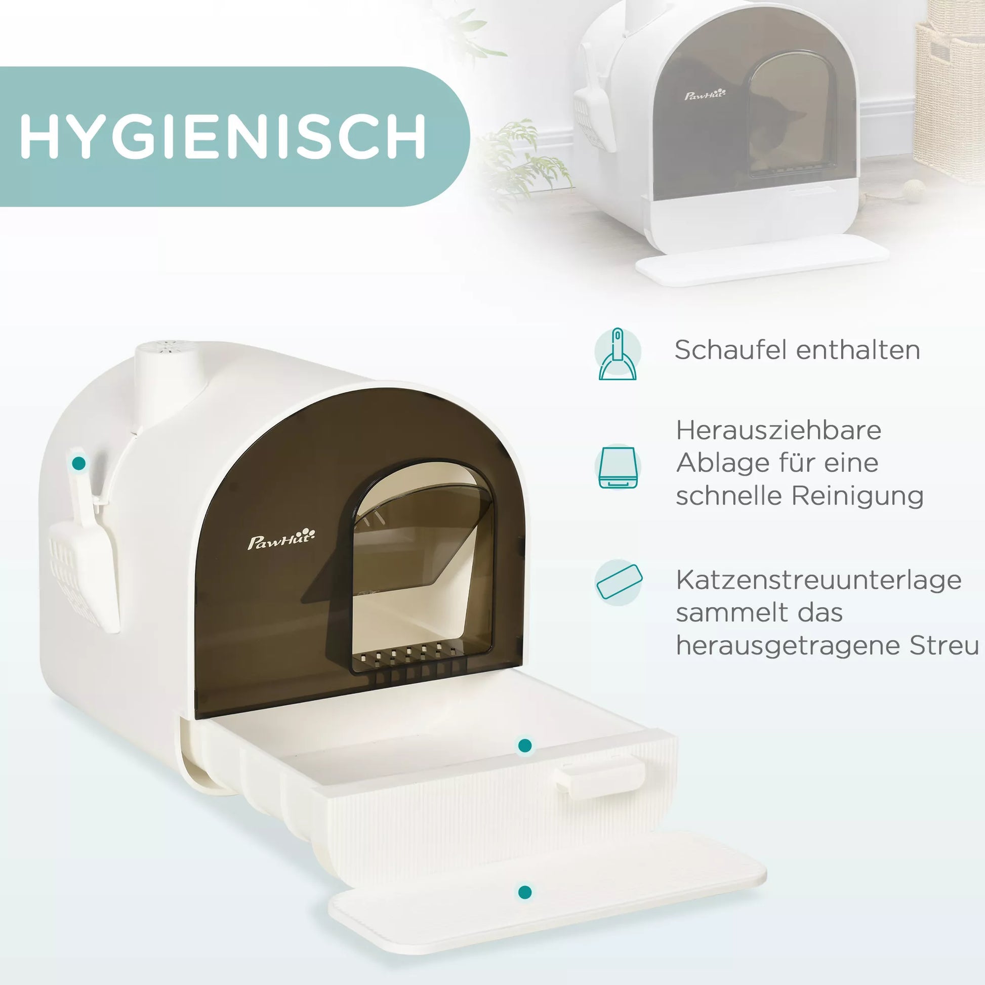 Ši PawHut kačių tualeto dėžė suteikia jūsų katei malonų privatumą ir užtikrina, kad ji jaustųsi patogiai atlikdama savo poreikius. Lengvai atsidarančios durelės ir pridedamas oro filtras neleidžia sklisti nemaloniems kvapams. Dėl ištraukiamo dėklo ir pridedamos kraiko kastuvėlio valymas tampa itin paprastas. Be to, malonios pastelinės spalvos ir rafinuota dėžės forma tinka beveik prie bet kokio interjero stiliaus.