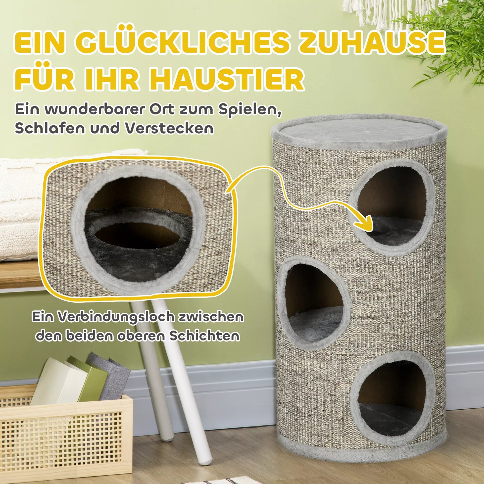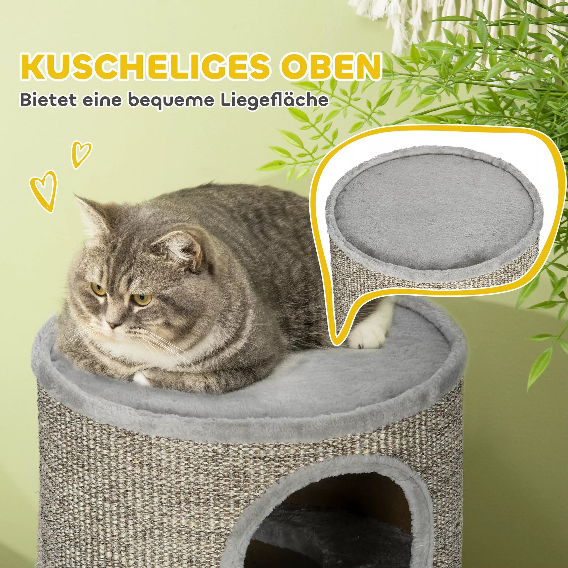 Palepinkite savo katę su prabangiu! Jaukus kačių draskymo stovas su sizaliu siūlo ne tik begalę žaidimo valandų, bet ir tris patogius urvelius slėptis bei miegoti. Minkšta pliušinė medžiaga užtikrina aukščiausią komfortą ir kviečia prisiglausti. Tai puiki poilsio vieta, kuri leis jūsų katei linksmai leisti dieną ir ramiai ilsėtis naktį. Padovanokite savo augintiniui geriausia – laimingoms ir atsipalaidavusioms pūkuotoms letenėlėms!