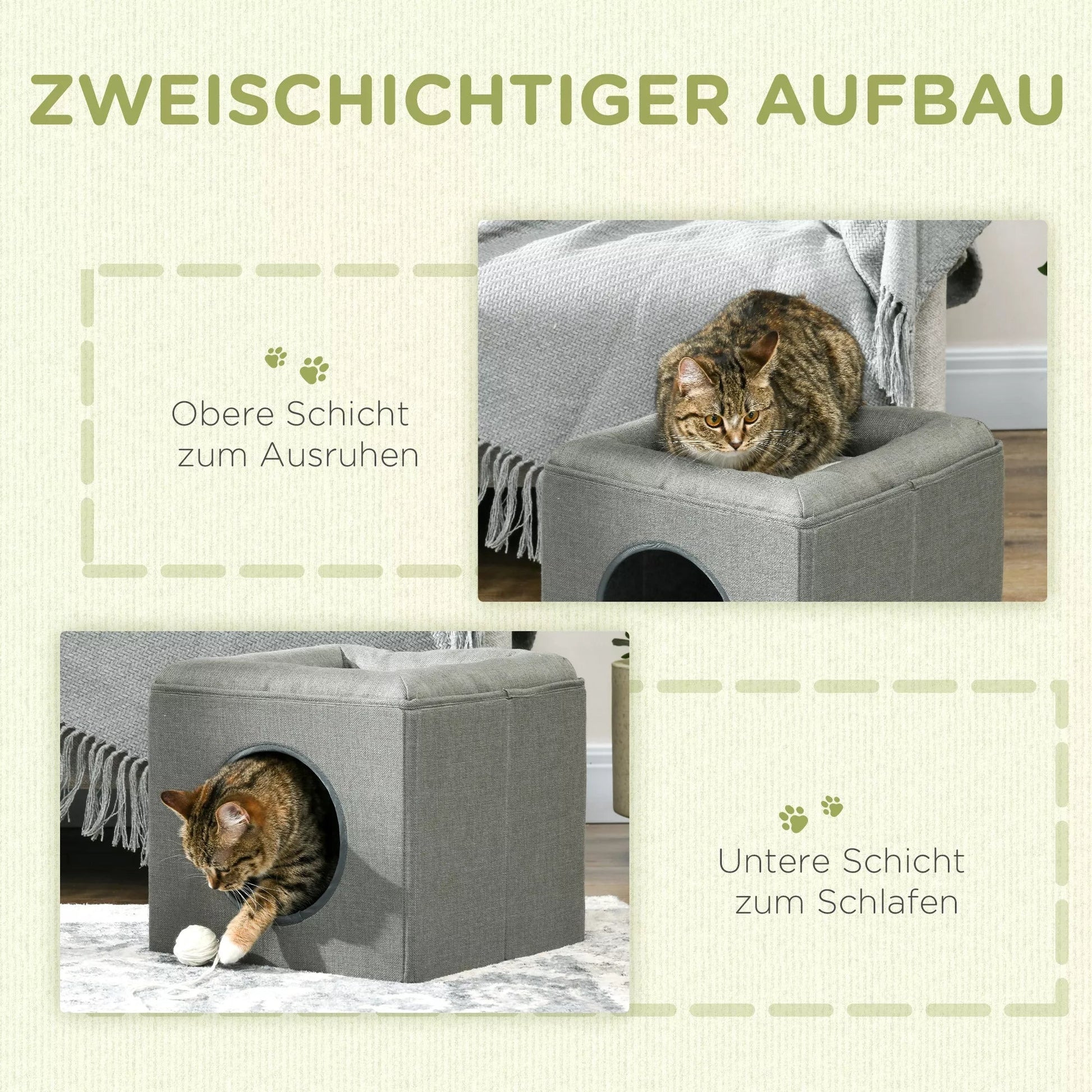 • ✔ Praktiškas 2-in-1 baldas: katės namelis su poilsio zona ir stebėjimo platforma