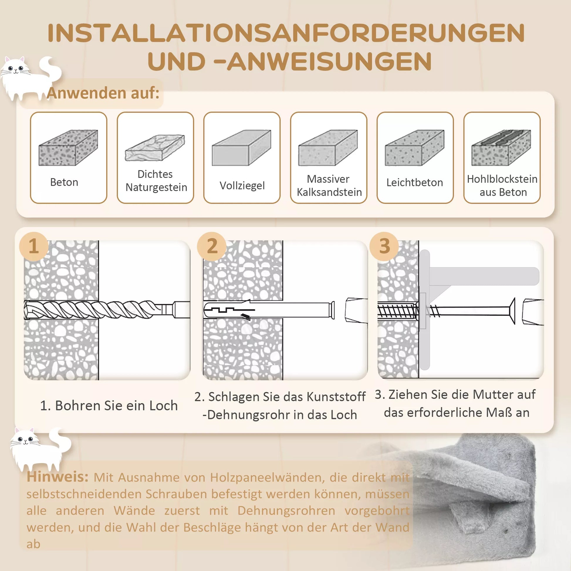 - ✔ Tvirtinama prie sienos, taupo grindų plotą ir išnaudoja jūsų namų aukštį, ką katės mėgsta