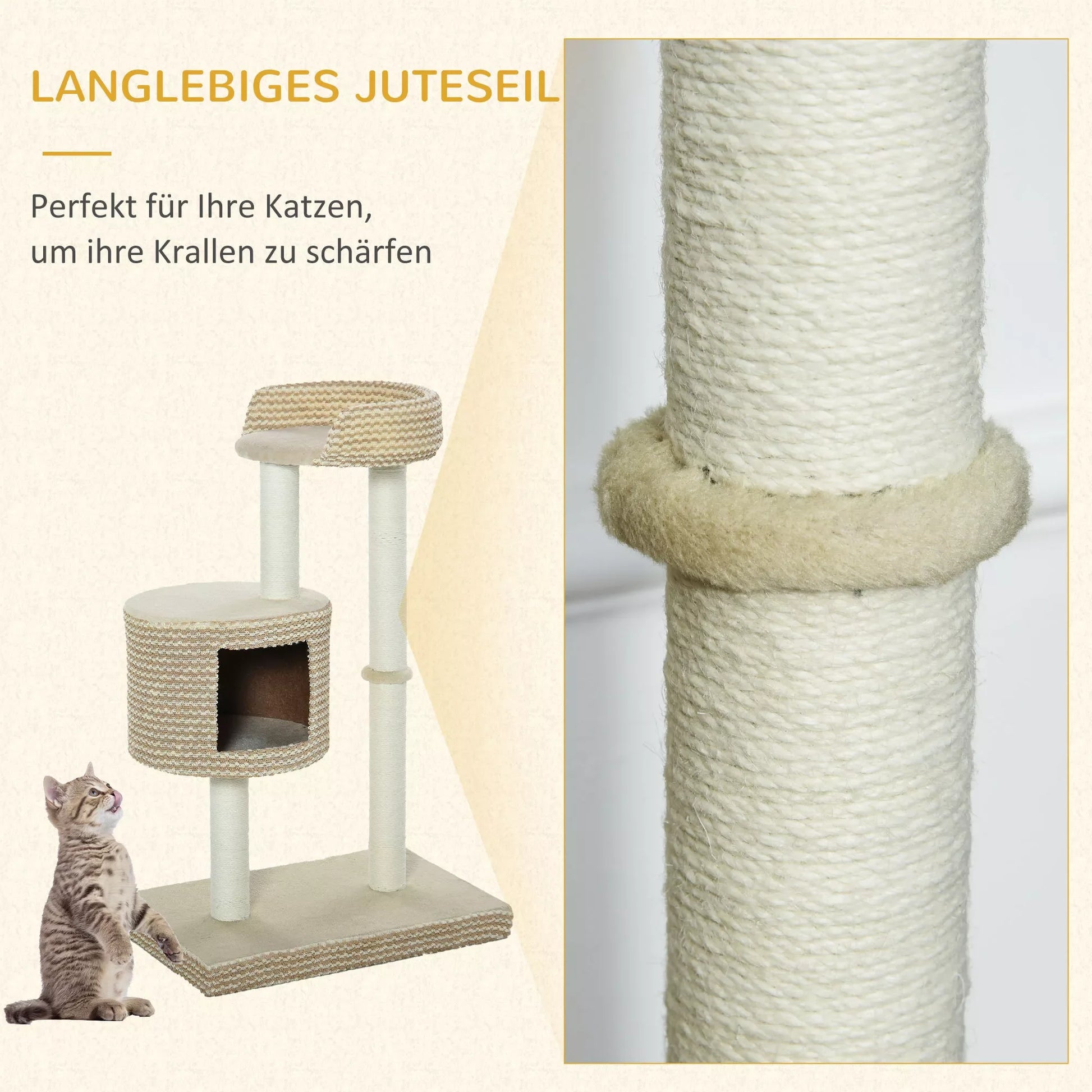 Katės medis, draskyklė, laipiojimo medis, minkštos apžvalgos platformos, smėlio ir kavos spalvos, medžio drožlių plokštė, pliušas, džiutas, 61x41x96 cm