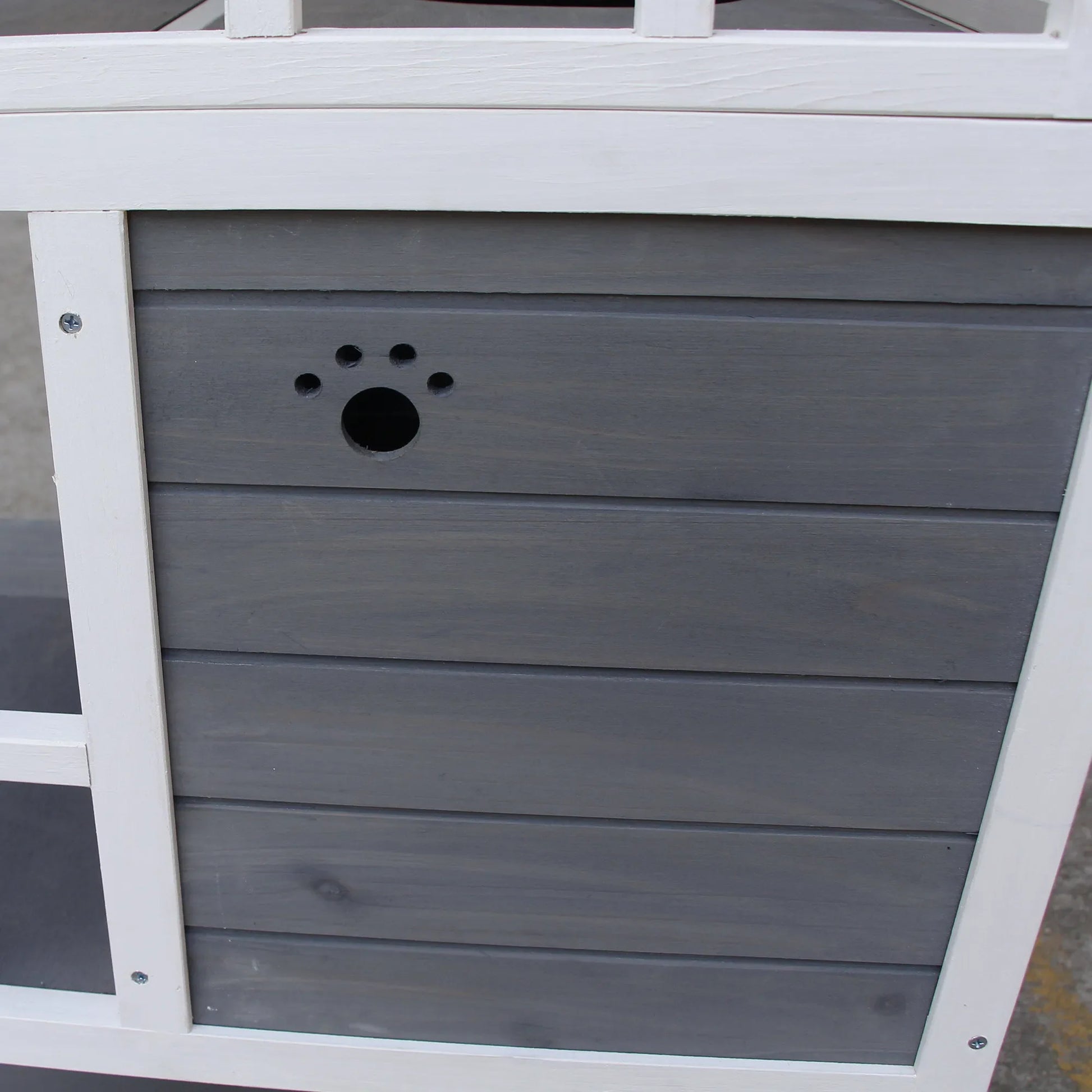 - ✔ Šis kačių namelis pagamintas iš pušies medienos, suteikia jūsų katei prieglobstį nuo vėjo ir lietaus