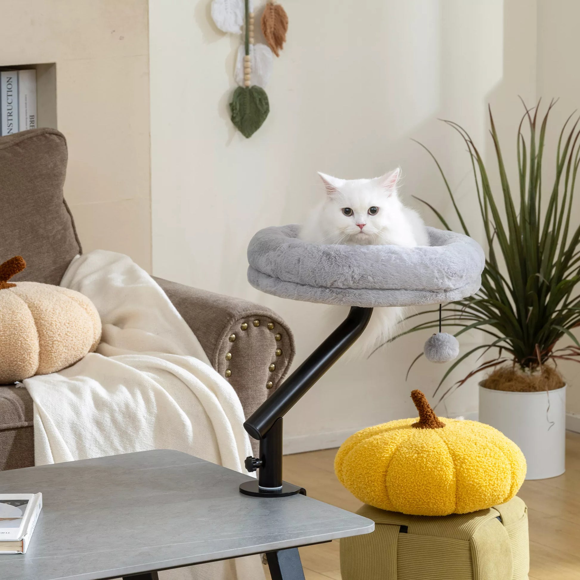 Katės stalinė lova, katės lova prie stalo su 360° pasukimu, reguliuojamu aukščiu, katės gultas su nuimamu, skalbiamu skalbimo mašinoje guoliu, katėms iki 6 kg, namų biurui, pilka
