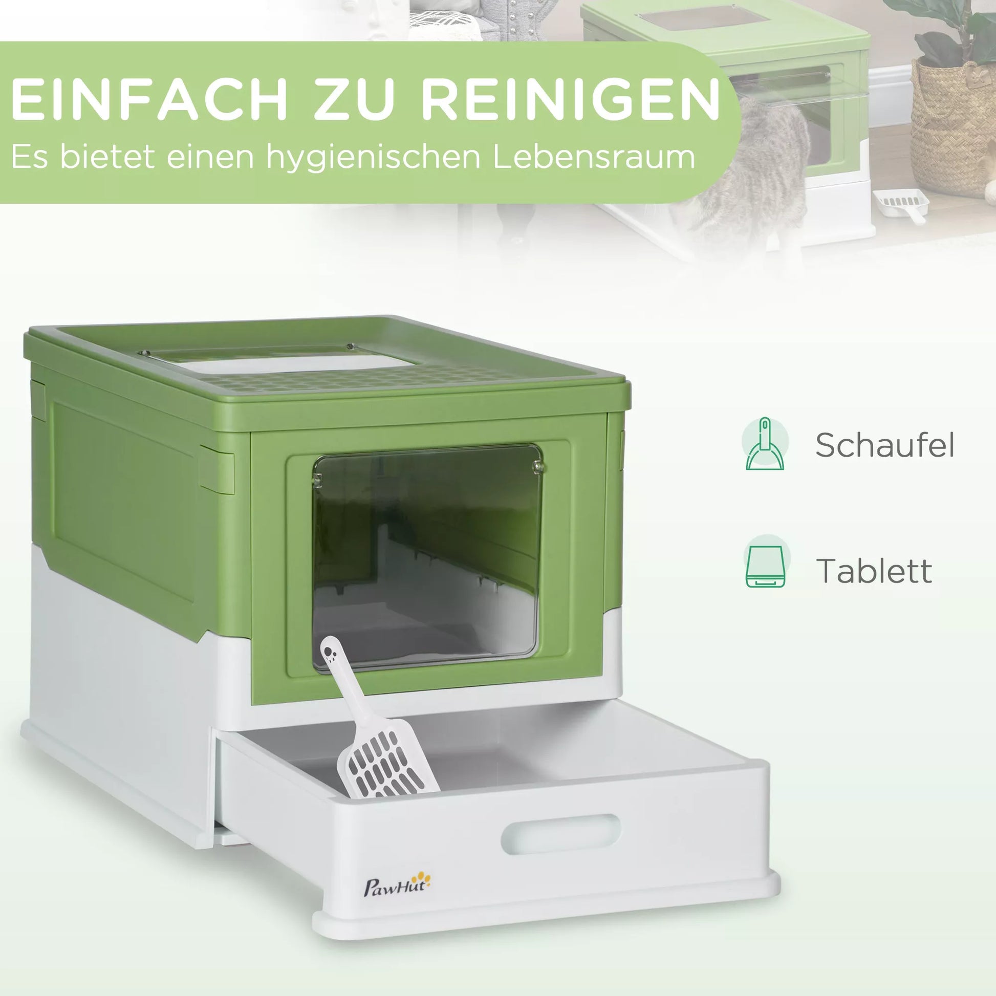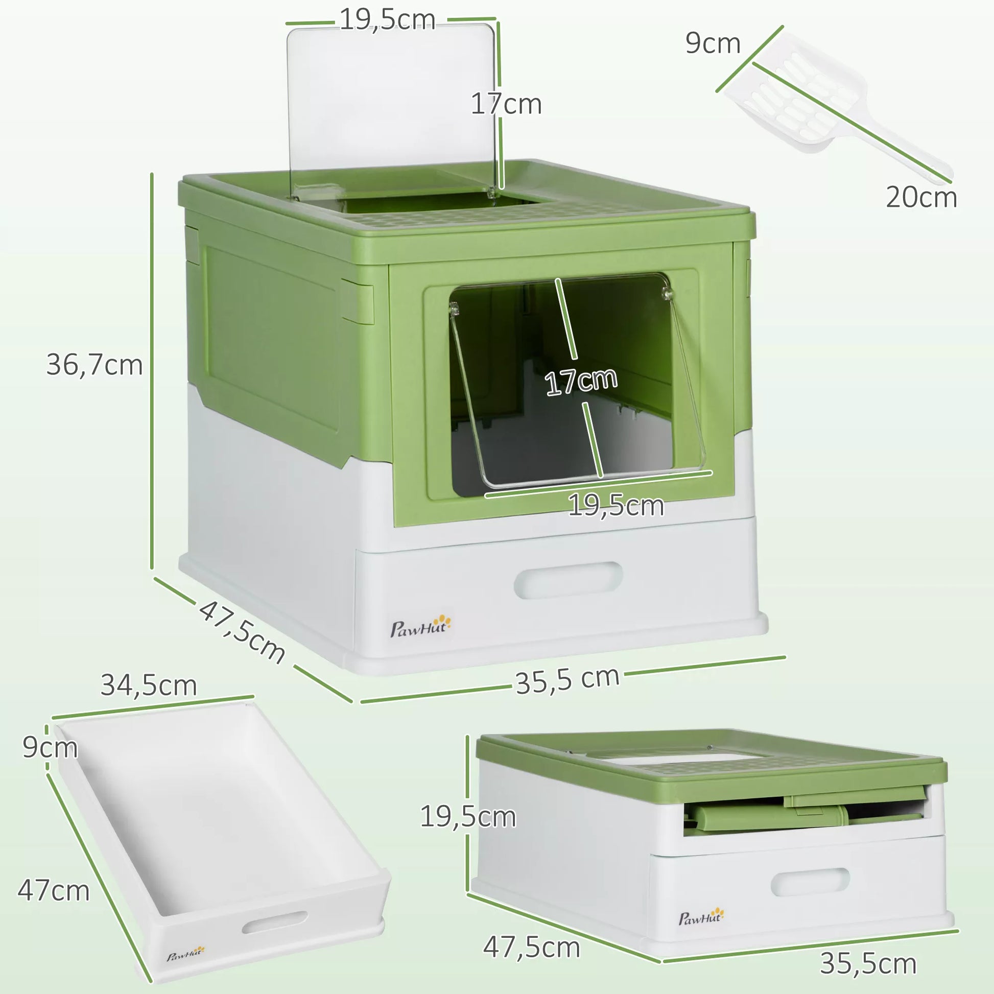 Katės tualetas, sulankstomas, 2 durys, su kraiko kastuvu, 47,5x35,5x36,7cm, Balta/Žalia