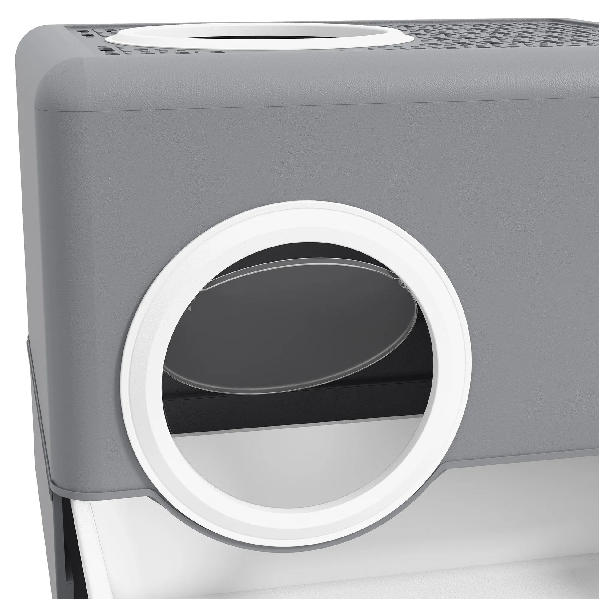 Tobula privati oazė – kačių tualetas. Erdvi, bet diskretiška, elegantiško dizaino erdvė suteikia daug privatumo ir vietos kraikui. Valymui tiesiog ištraukite stalčių – jokių atliekų, jokio vargo. Katės įeina į dėžę iš priekio ir išeina iš viršaus, taip sumažindamos kraiko išbėrimą. Su vėdinamu stogu ir trimis juosiančiomis sienelėmis šis prabangus guolis suteiks jūsų augintiniui ramybę ir atsipalaidavimą.