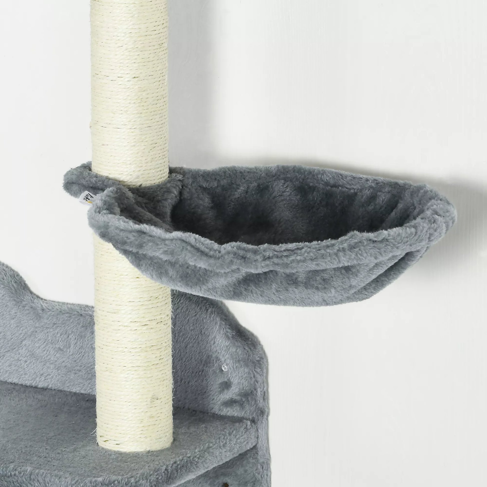 Kopimo laipteliai, laipiojimo siena, katės laipteliai, 4 dalių komplektas, su draskykle, hamaku, pilka+kremas-balta, 40 x 28 x 73cm