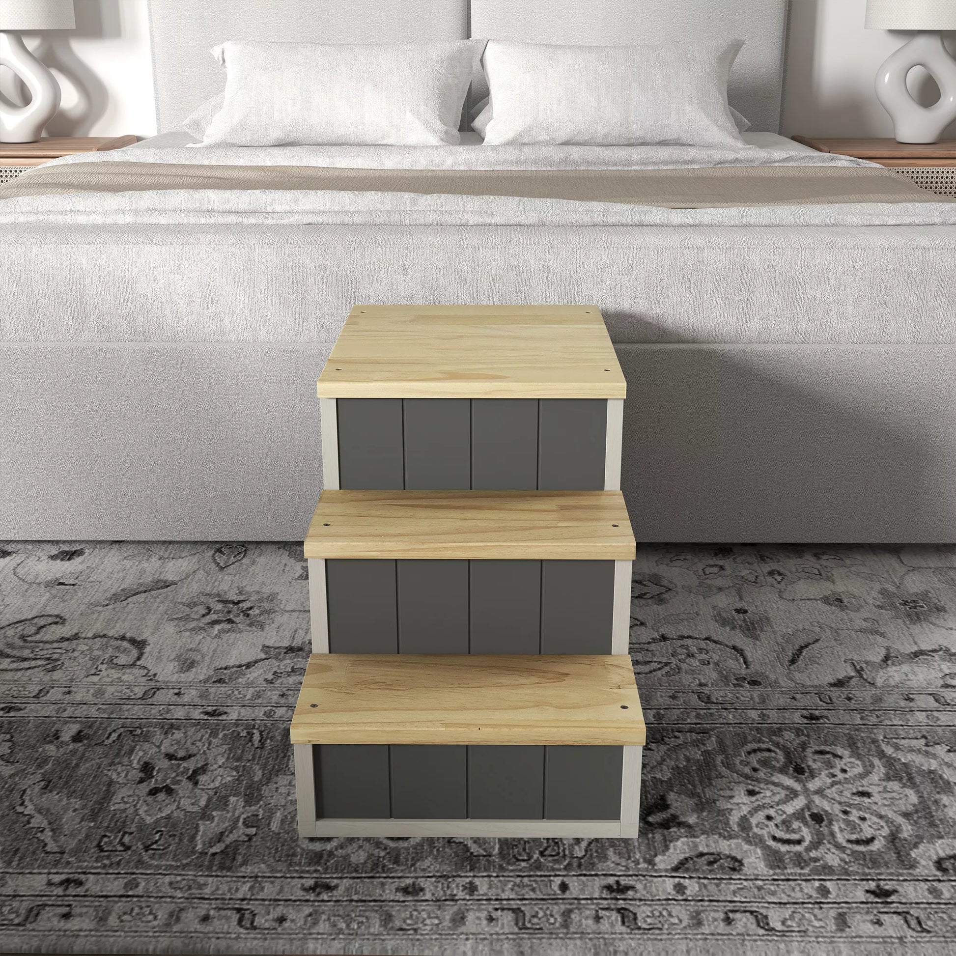 Laipsniai augintiniams, 3 pakopos, pušies mediena, 79 cm x 38,5 cm x 45 cm, natūralios spalvos + balta