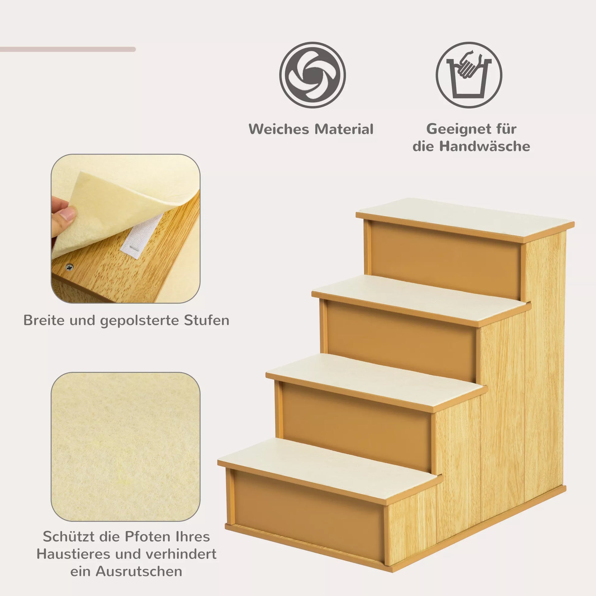 Laipteliai augintiniams, šunims ir katėms, 4 pakopų, trumpo pliušo, iki 30 kg, 40 x 59 x 54,2 cm, natūralios spalvos.