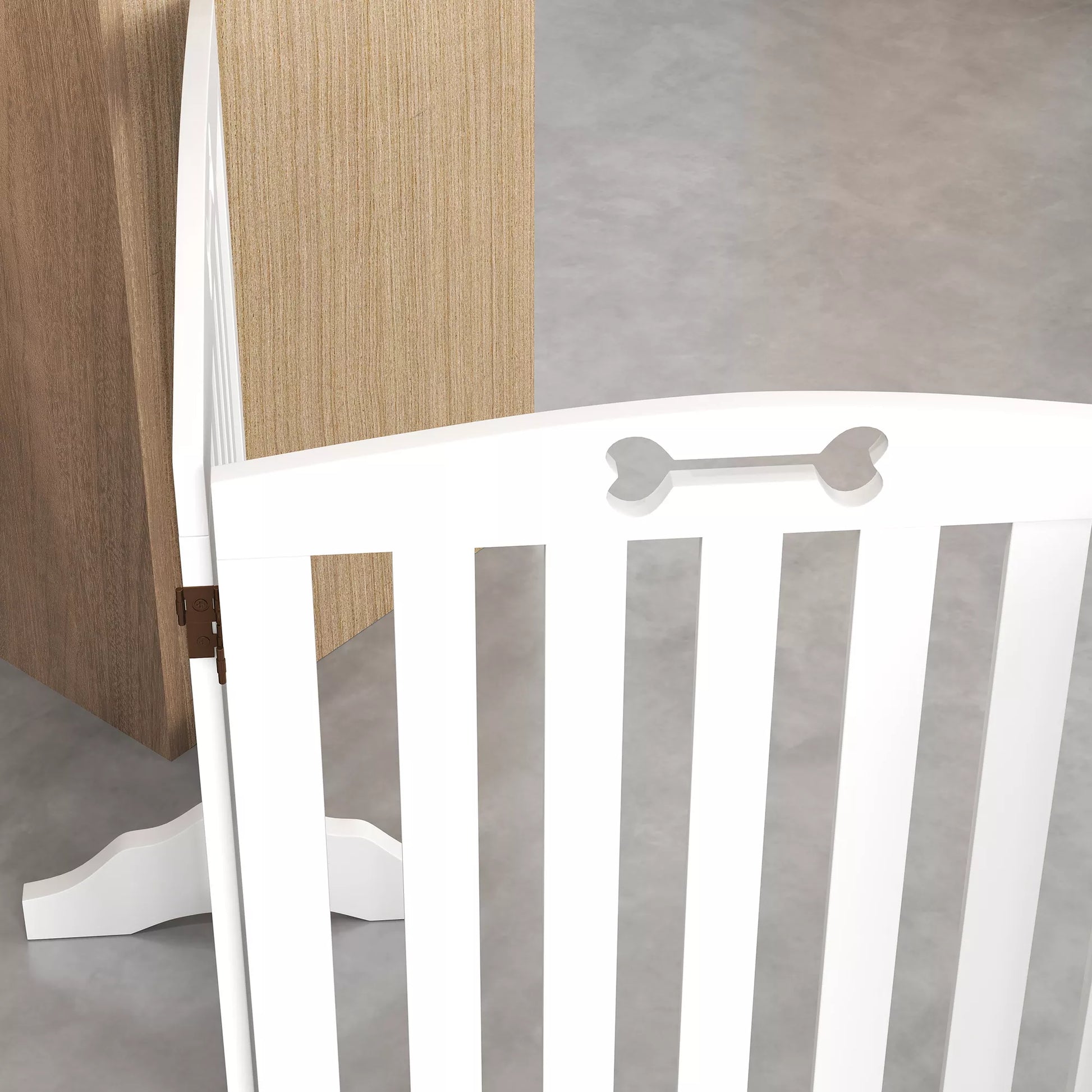 Laisvai pastatomi šunų varteliai su atraminėmis kojelėmis, skirti durų angoms, koridoriui, laiptams, 207,5x30x61 cm, baltos spalvos.